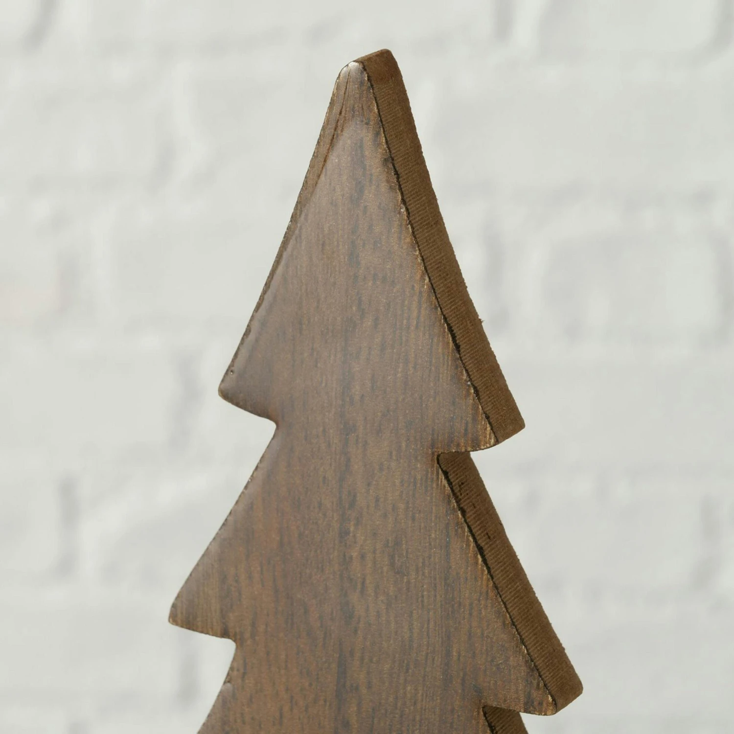 Der Weihnachtsbaum aus Holz (MDF) ist in einem schönen Dunkelbraun gehalten, glänzend lasiert und steht auf einem hübschen Sockel