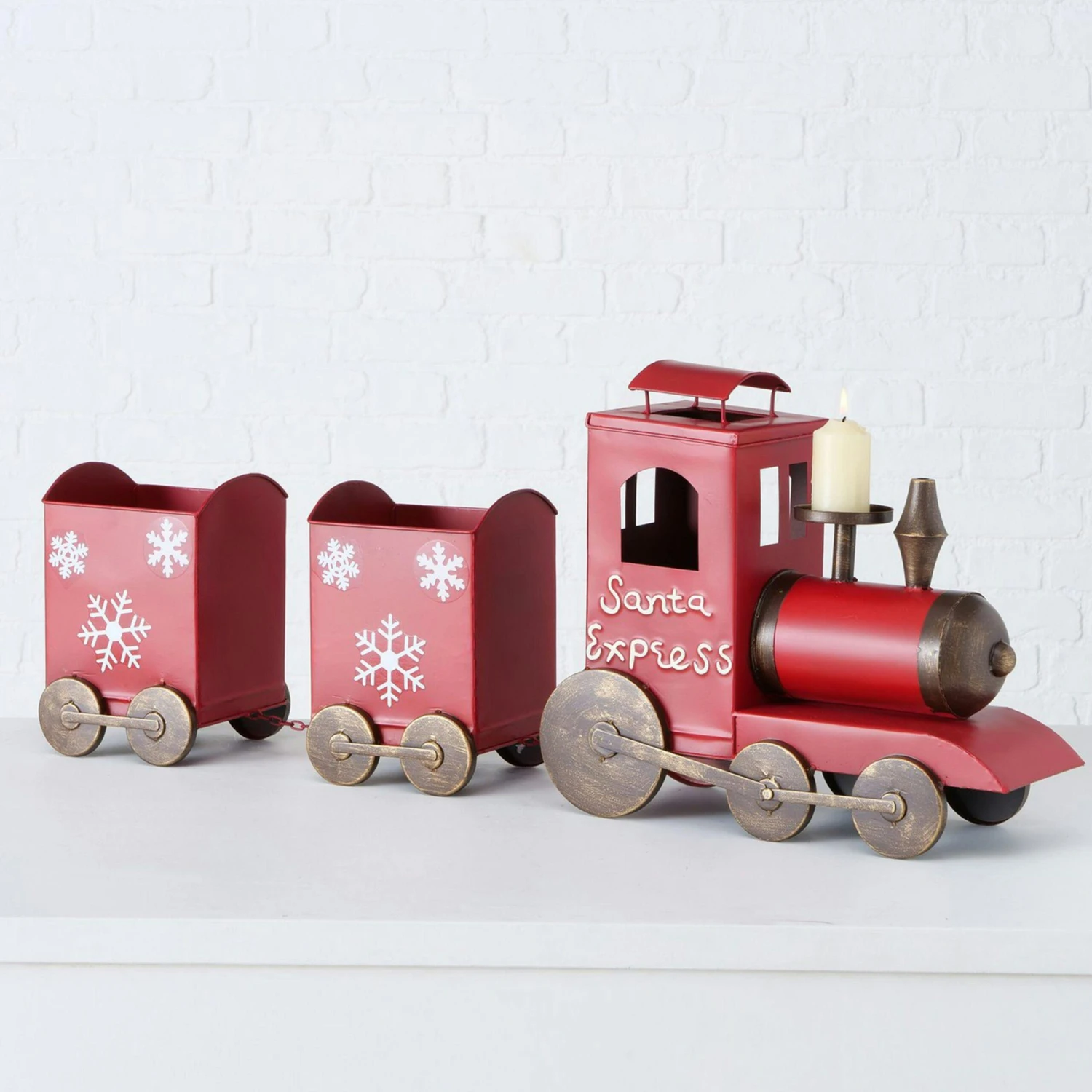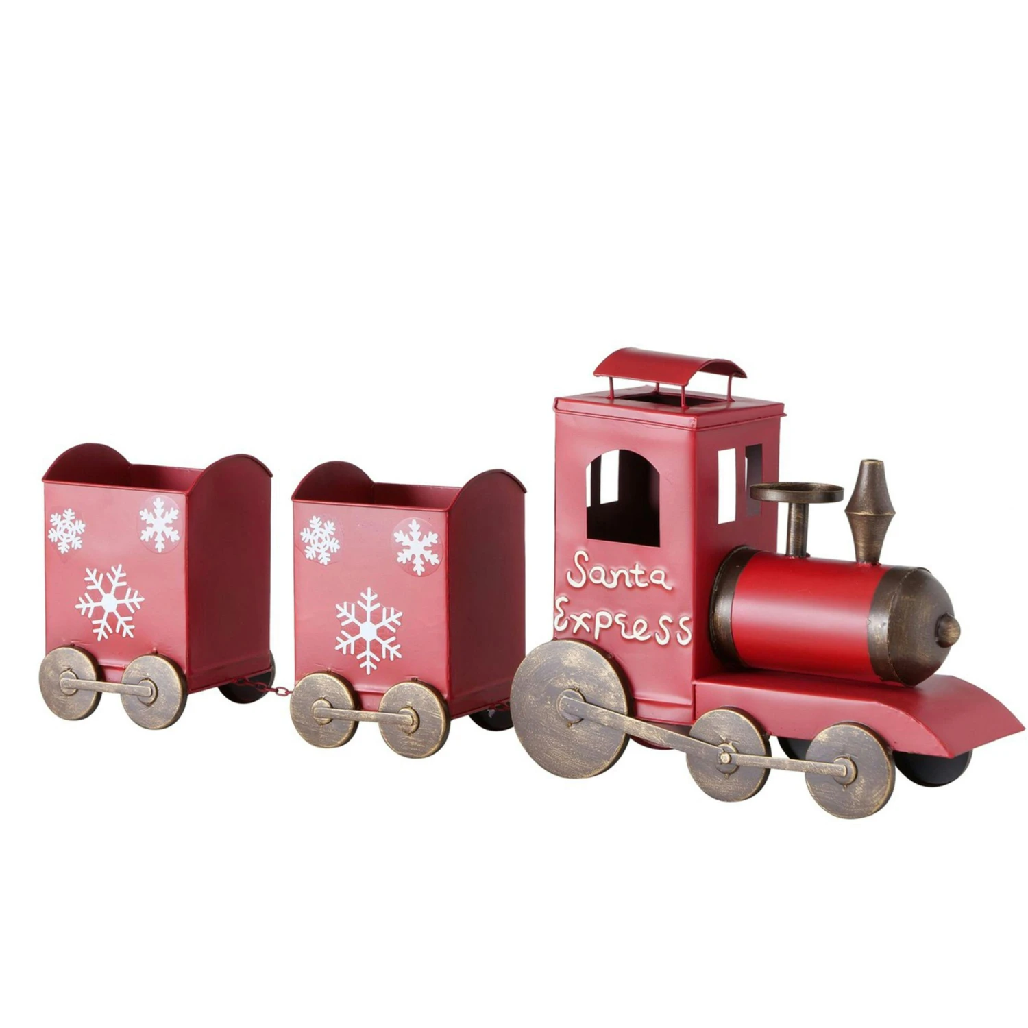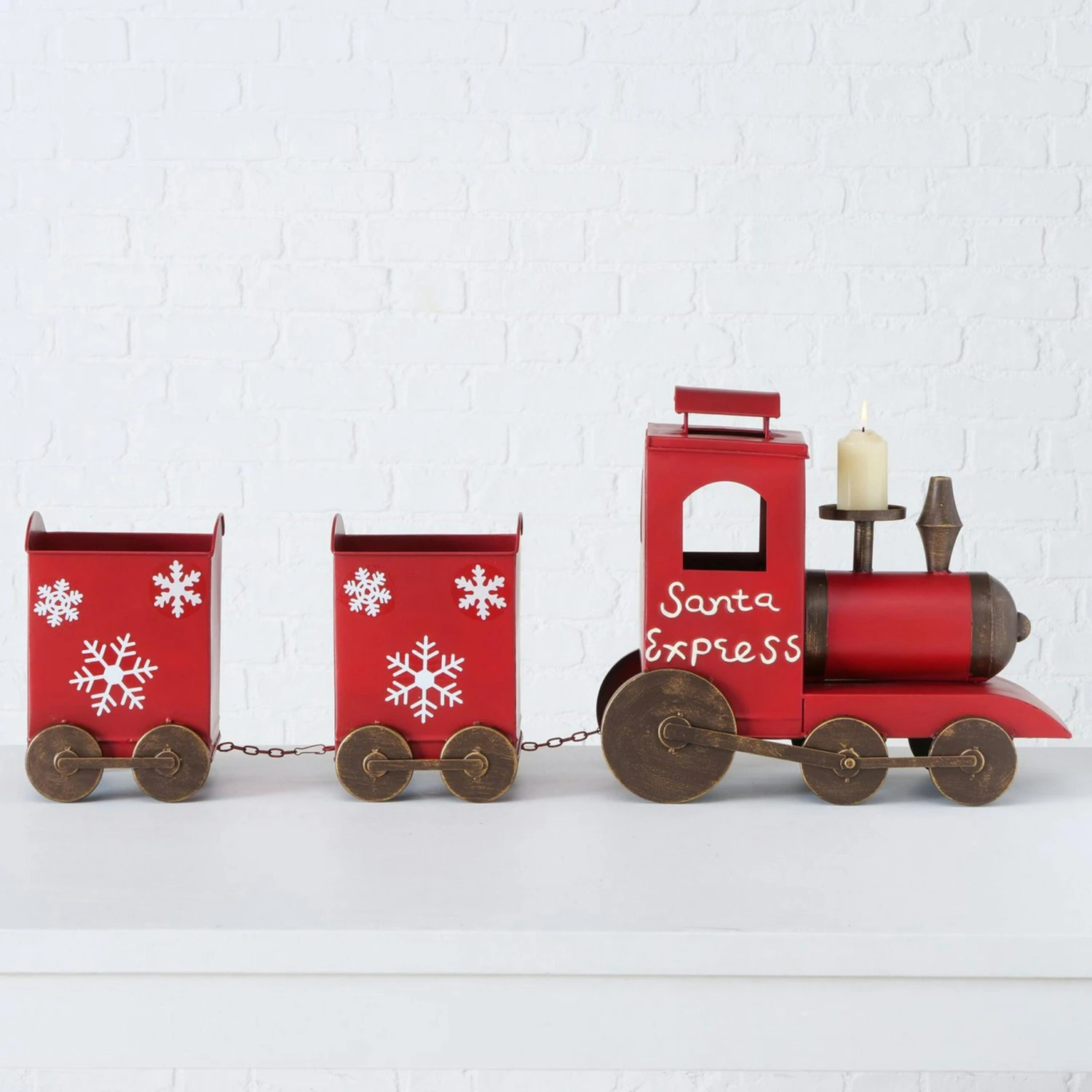 - Die schnuckelige Lokomotive mit ihren Wagen ist in einem hübschen Dunkelrot gehalten und mit weißen Schneeflocken & dem Schriftzug SANTA EXPRESS versehen