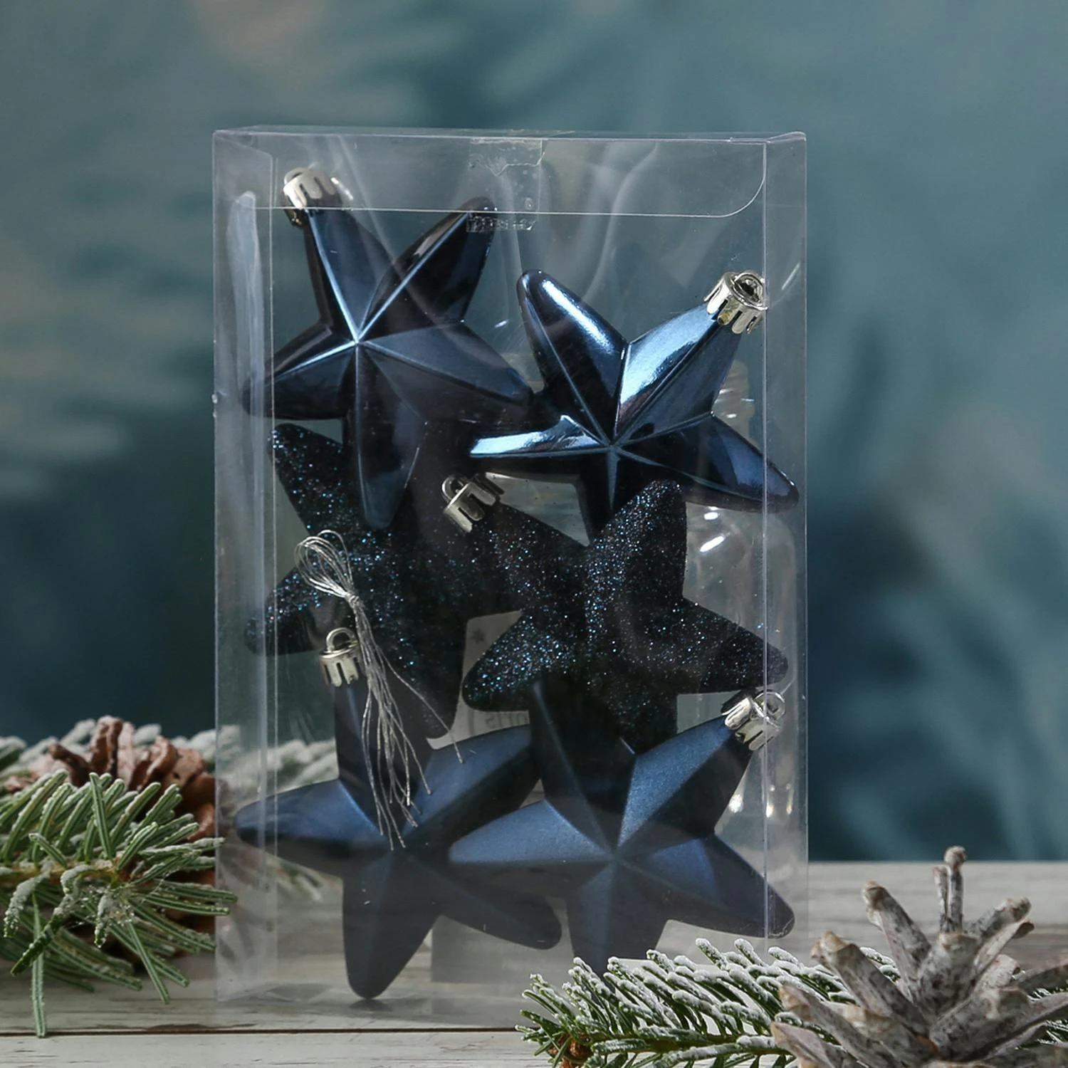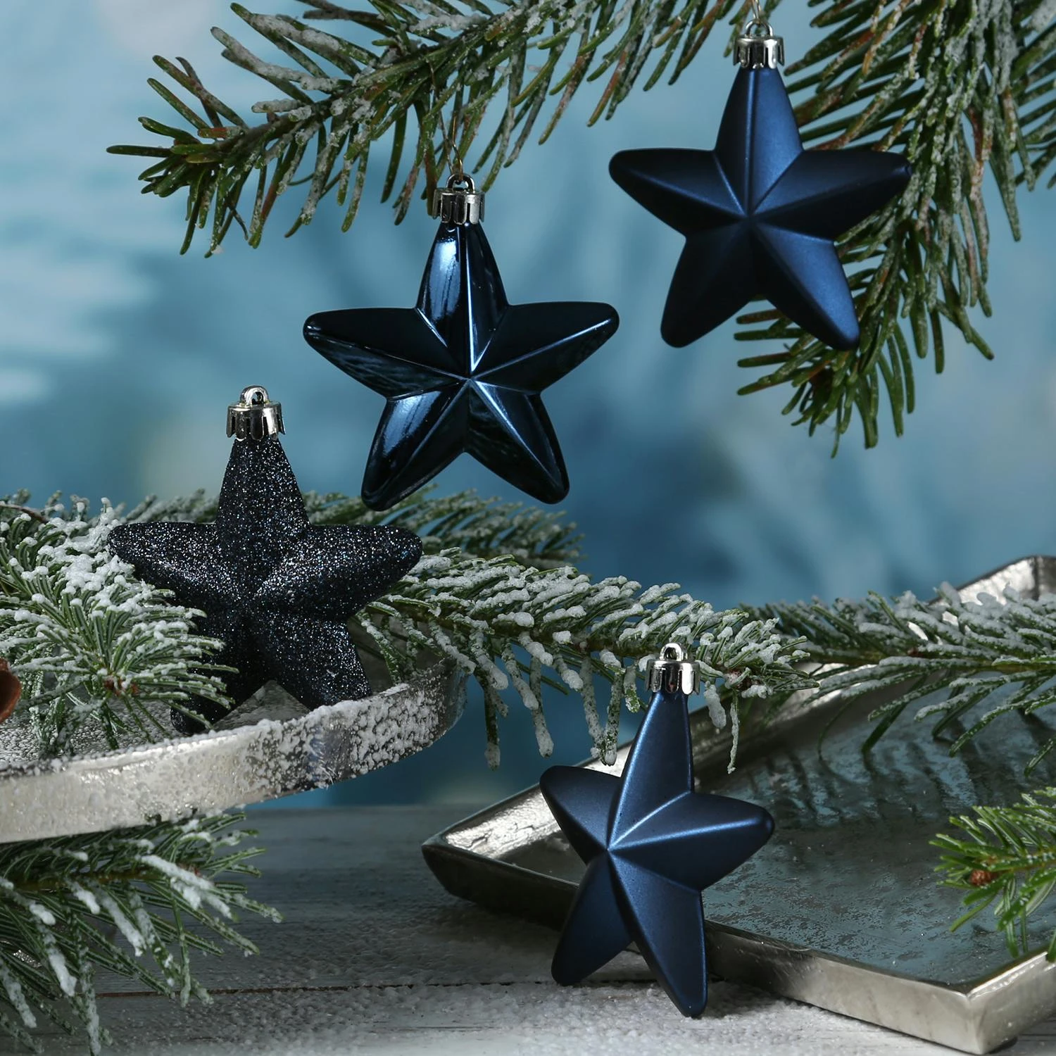 Christbaumschmuck STERN – Weihnachtsschmuck – bruchfest – glänzend matt glitzernd – dunkelblau – 6er Set