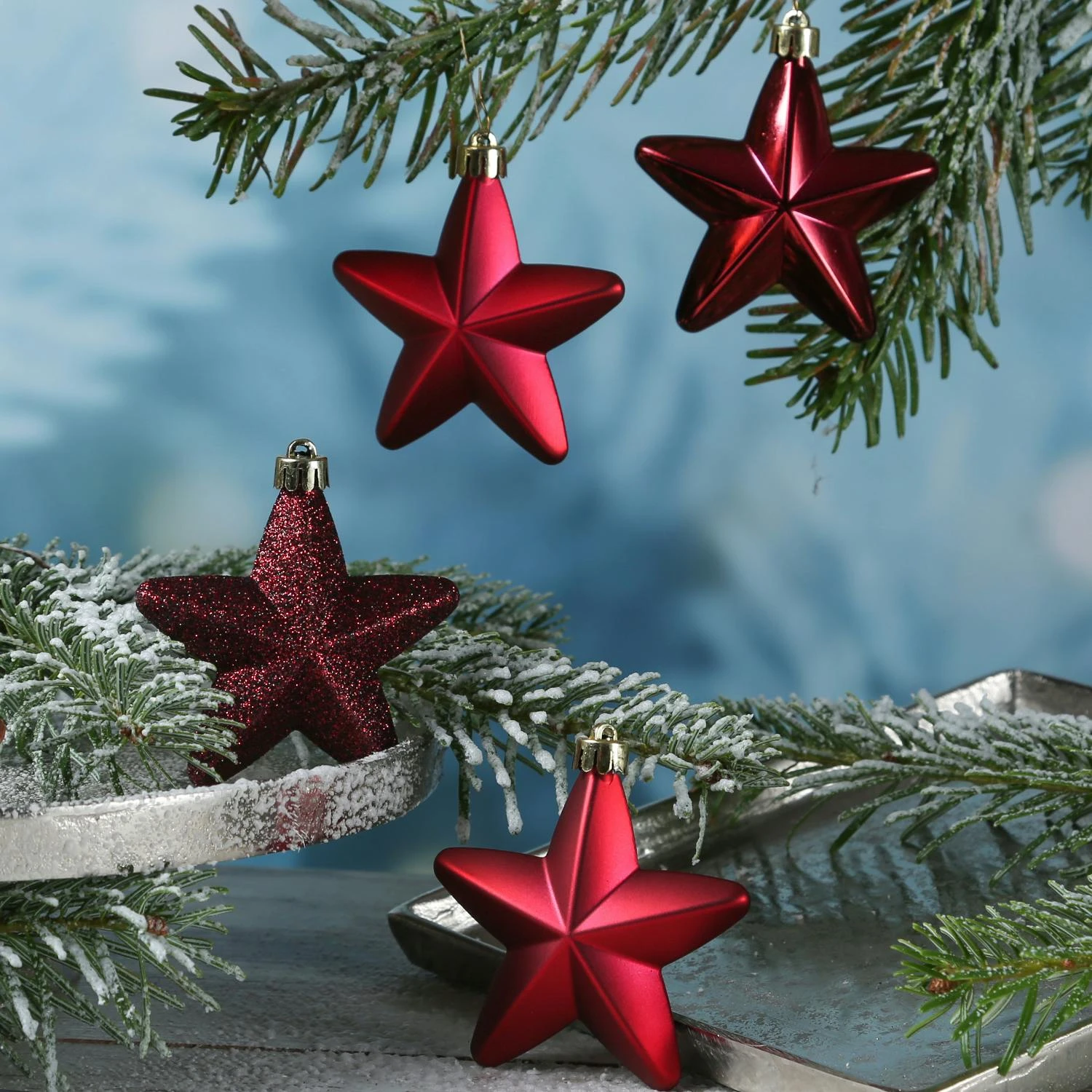 Christbaumschmuck STERN – Weihnachtsschmuck – bruchfest – glänzend matt glitzernd – weinrot – 6er Set