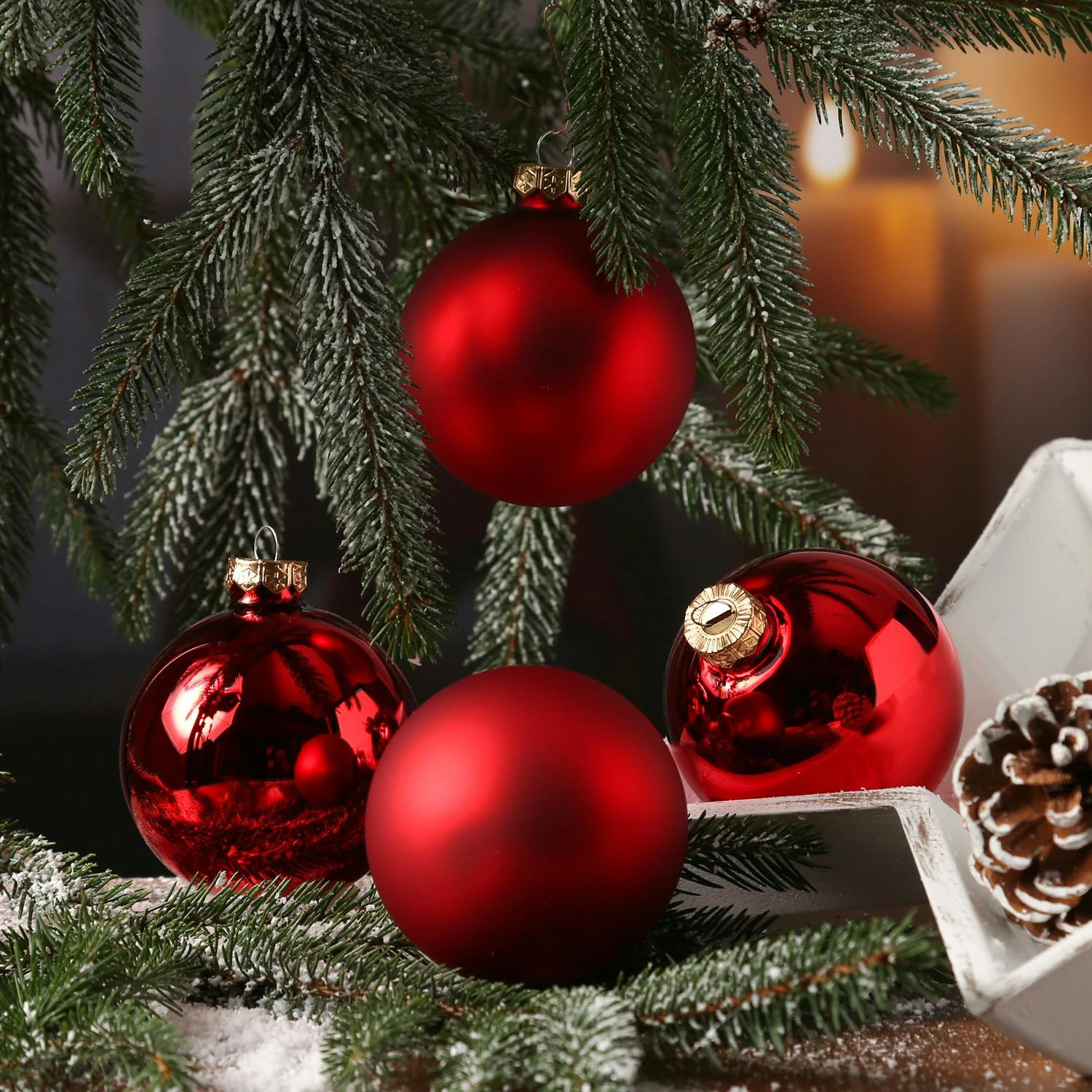 Die wunderschönen roten Christbaumkugeln aus Glas sorgen nicht nur am Weihnachtsbaum in Deiner Wohnung für eine festliche Stimmung. Die Baumkugeln sehen auch besonders gut als Deko für Fenster, Schalen und Glasgefäße aus. Aber auch im Adventskranz, in Adventssträußen oder Gestecken können die Christbaumkugeln hervorragend dekoriert werden.