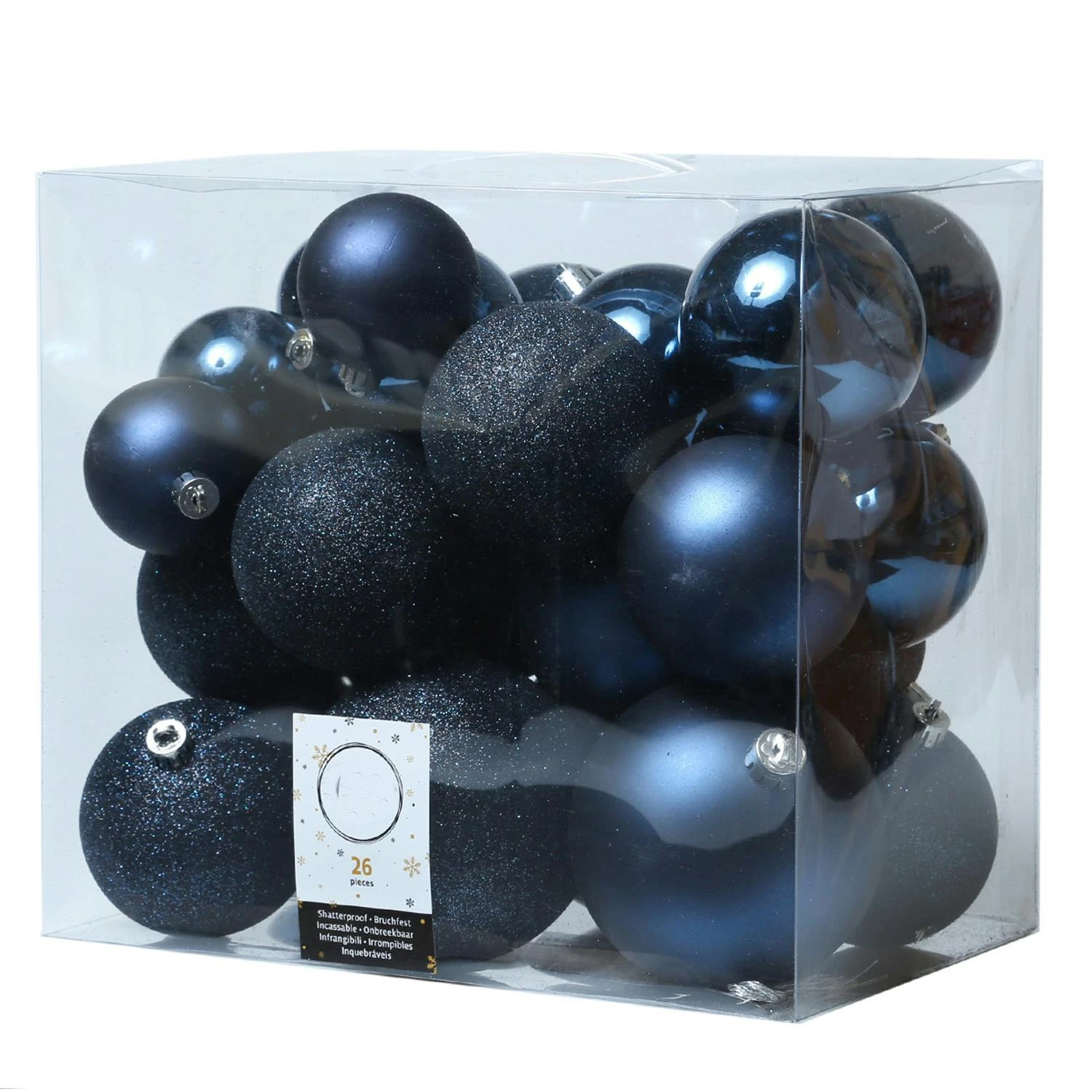 Christbaumkugel – Weihnachtsbaumkugel – bruchfest – glänzend, matt u. glitzernd – dunkelblau – 26er Set