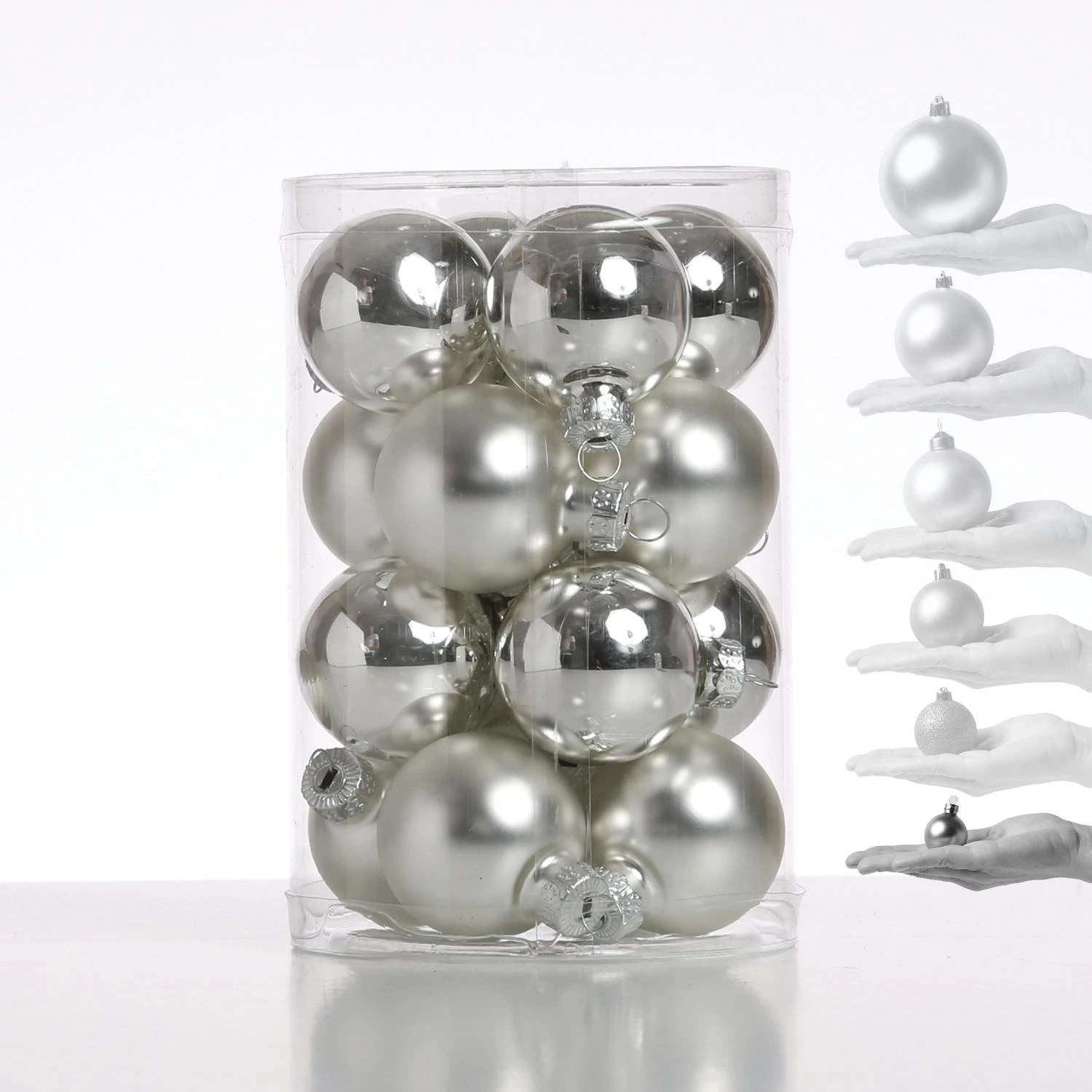Christbaumkugel – Weihnachtskugel – Glas – D: 3,5cm – glänzend und matt – silber – 16er Set