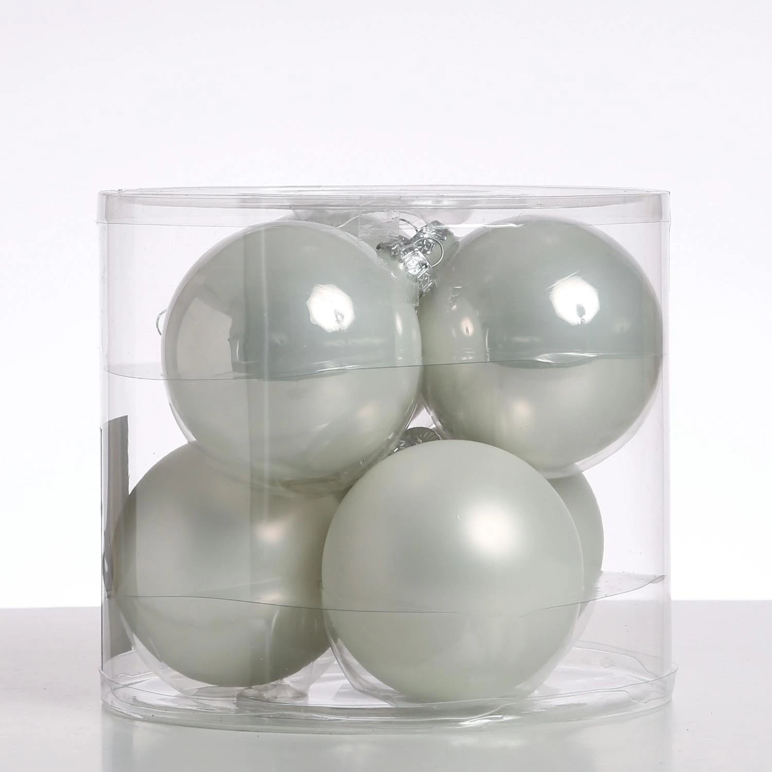 Christbaumkugel – Weihnachtsbaumkugel – Glas – D: 8cm – glänzend und matt – silber, weiß – 6er Set