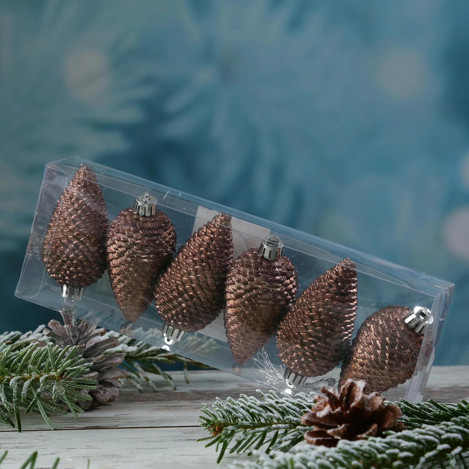 Christbaumschmuck ZAPFEN – Weihnachtsbaumschmuck – bruchfest – glitzernd – H: 8cm – braun – 6er Set