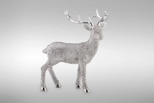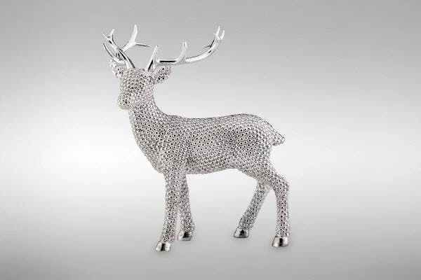 Große Walnuss aus Porzellan galvanisiert und silberglänzend. Die Größe ist 12,0 x 9,0 x 8,0 cm.