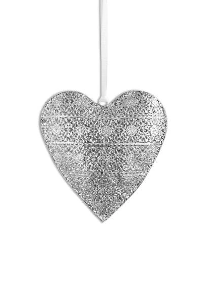 Deko Anhänger Herz Anhänger verziert, Durchmesser 27 cm, Breite 6 cm aus Edelstahl verchromt mit Band.