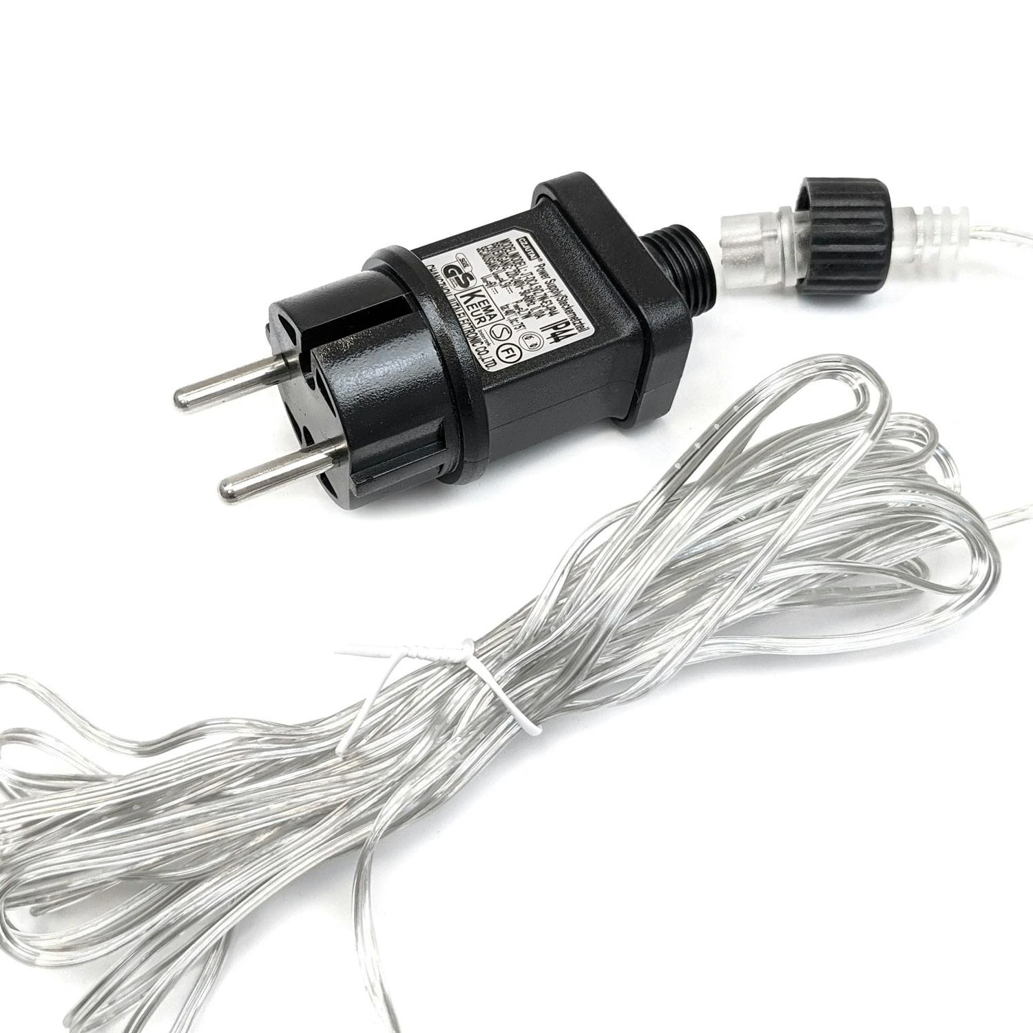 Diese Cluster-Lichterkette, aus biegsamen Silberdraht, verfügt über warmweiße Micro-LED-Lichter. Diese Lichterkette eignet sich hervorragend als Lichterdeko für den Innen- & Aussenbereich. Die verwendete LED-Technik ist gewohnt effizient und hält den Energieverbrauch mit nur 2.7 Watt extrem gering. Die Büschel-Lichterkette enthält 960 warmweiße LED-Lichter für ein exklusives Ambiente. Der Lichterstrang ist 9,6m lang und die Länge der Zuleitung beträgt 5m.