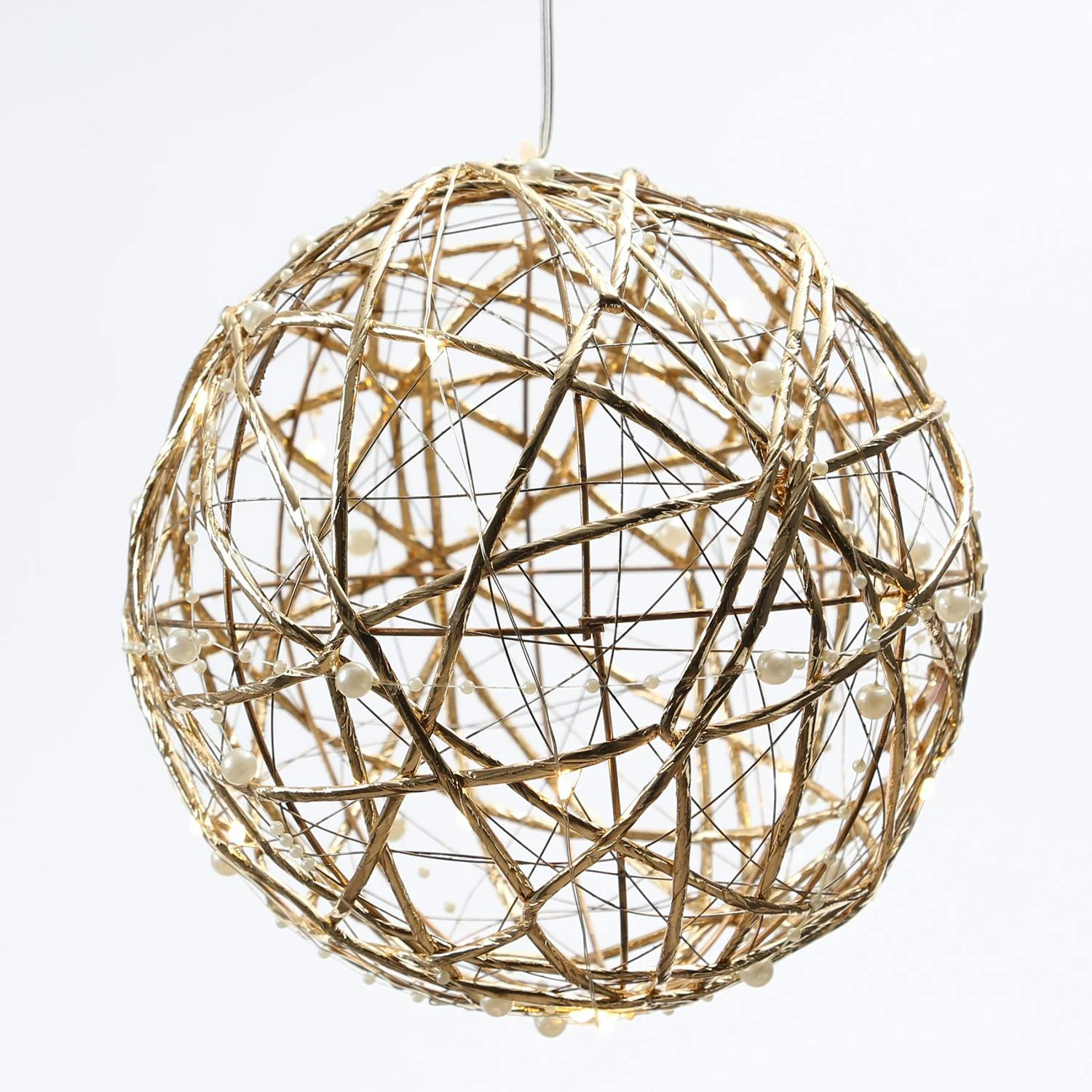 - Erscheinung: Beleuchtete Drahtkugel mit Perlen
