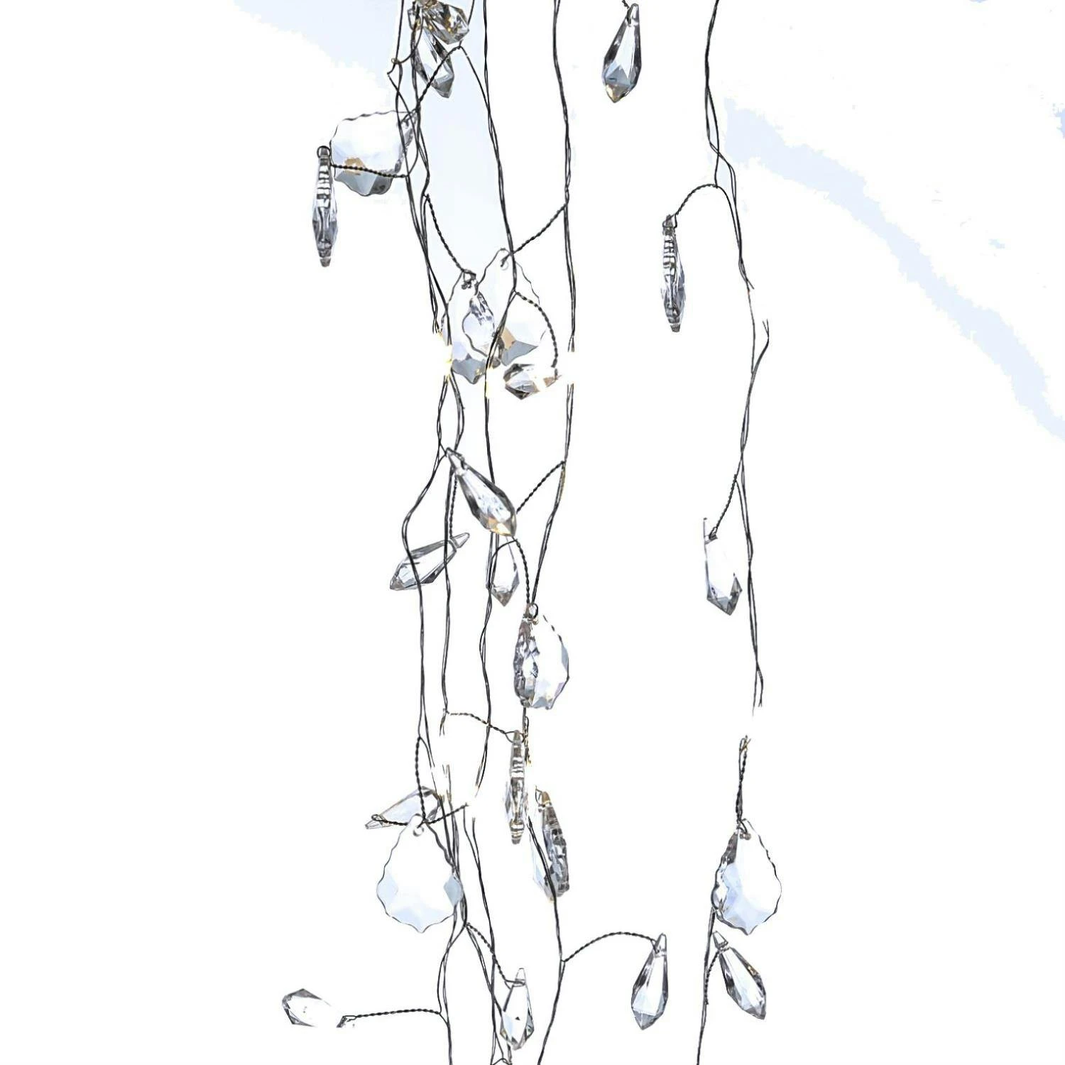 Die 10 einzelnen Drähte sind 150cm lang und sind mit je 16 Micro LED besetzt, die in angenehm warmweißen Licht leuchten. An 5 der dünnen Drähte sind weiße Edelsteine aus Kunststoff montiert, die herrlich funkeln und glitzern.