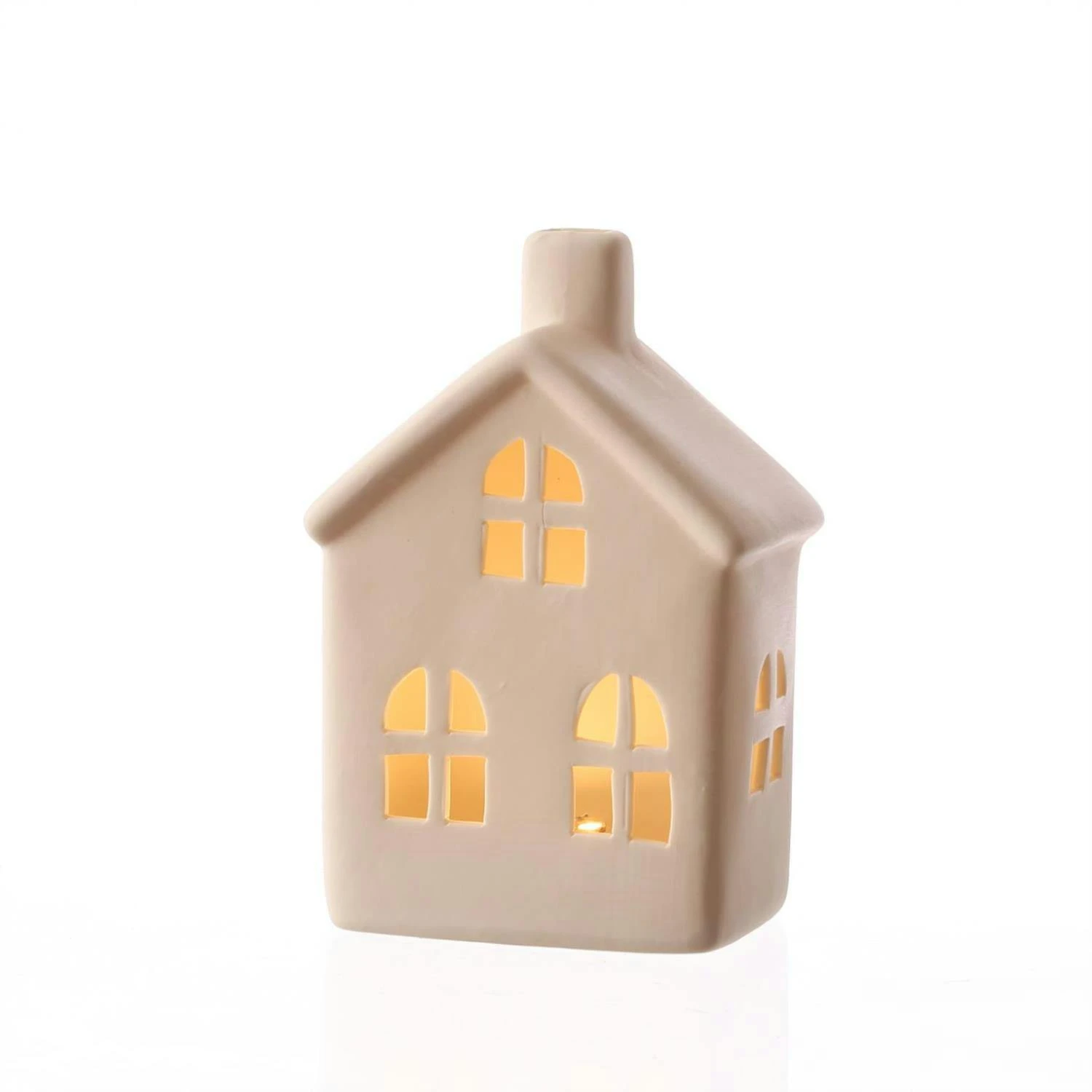 LED Haus – Porzellan – warmweiße LED – H: 15,6cm – inkl. Batterie – für Innen – weiß