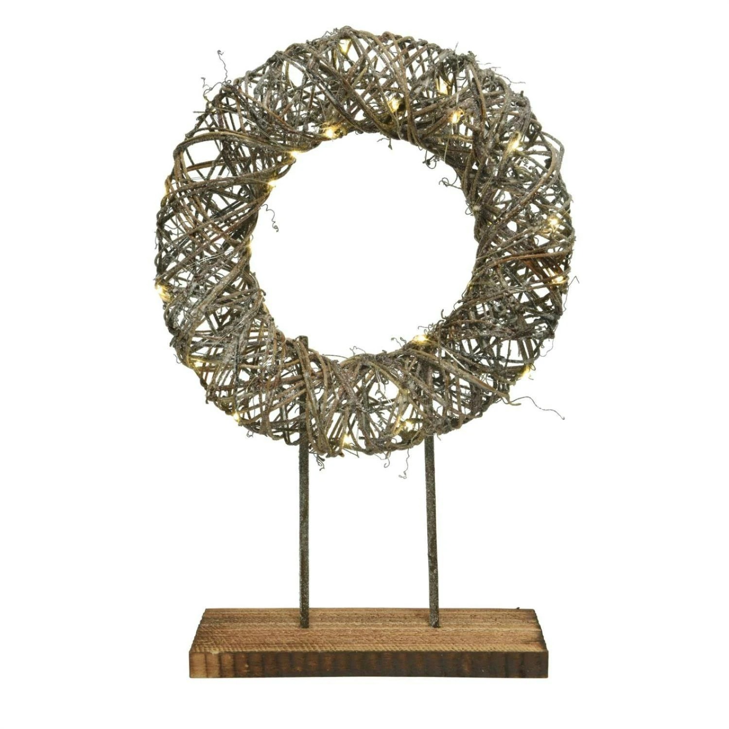 LED Metallkranz – Metall und Holz – 30 warmweiße LED – H: 45cm – stehend – Timer – Batterie