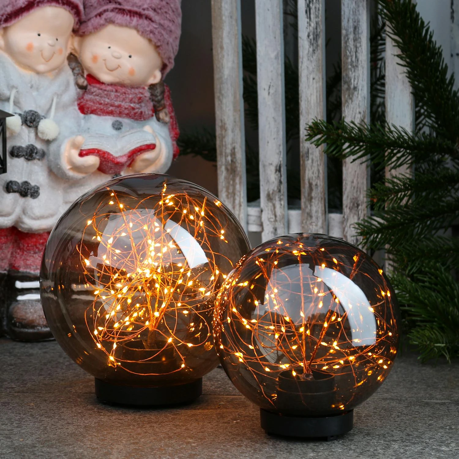 - Stehende LED Kugellampe mit Drahtlichterkette