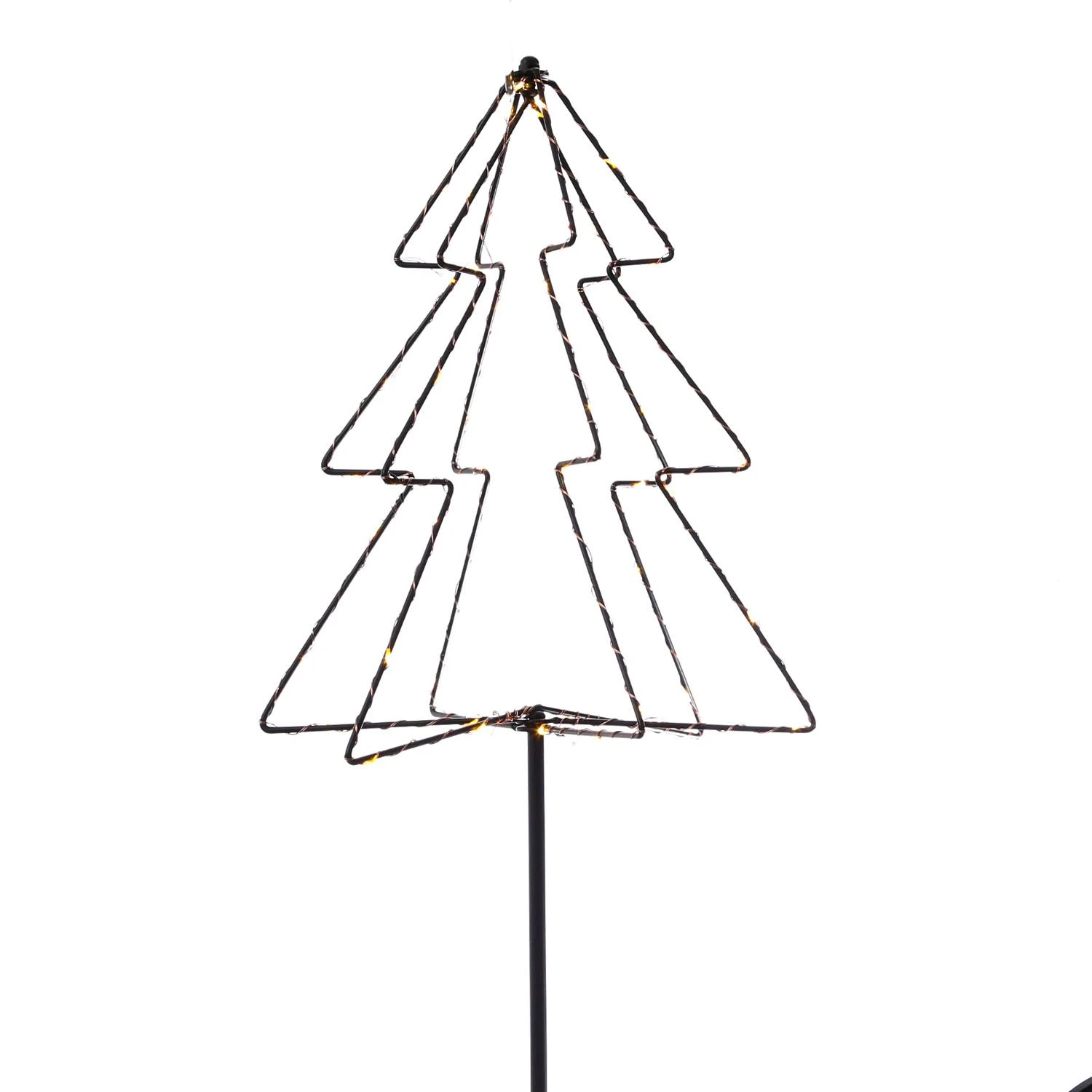 LED Gartenstecker 3D Tannenbaum – 52 warmweiße LED – H: 75cm – Timer – Batterie – Außen – schwarz
