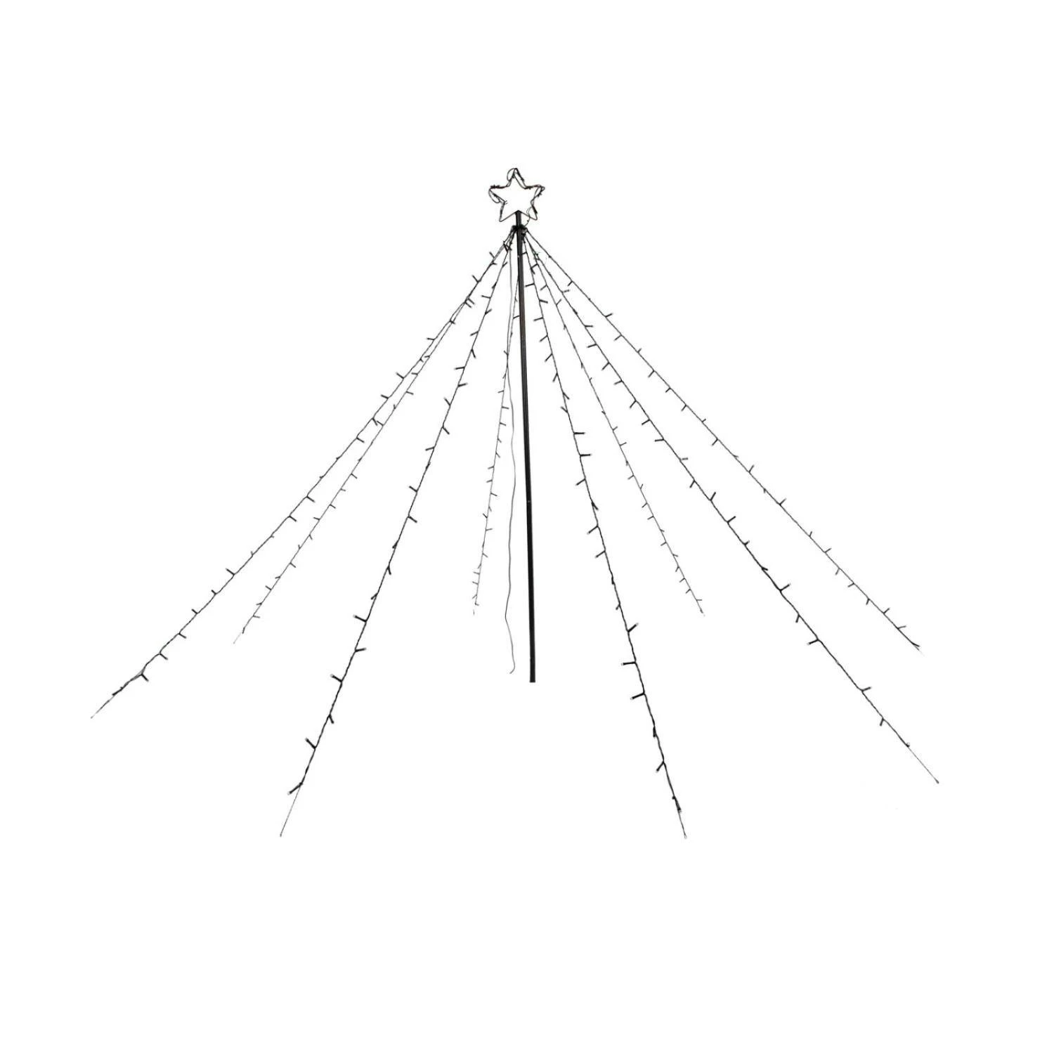 LED Lichterbaum mit Sternspitze – 8 Stränge – 200 warmweiße LED – H: 1,5m – für Außen – schwarz