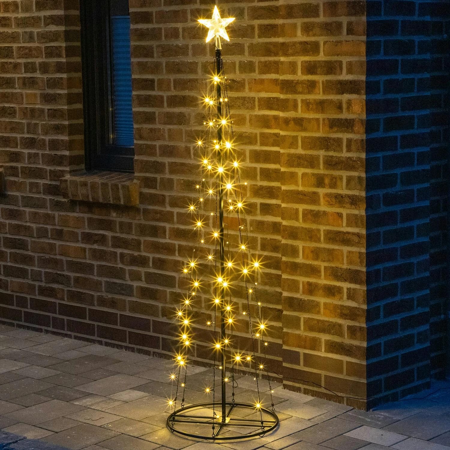 LED Lichterbaum mit Sternspitze – 6 Stränge – 150 warmweiße LED – H: 2,4m – für Außen – schwarz