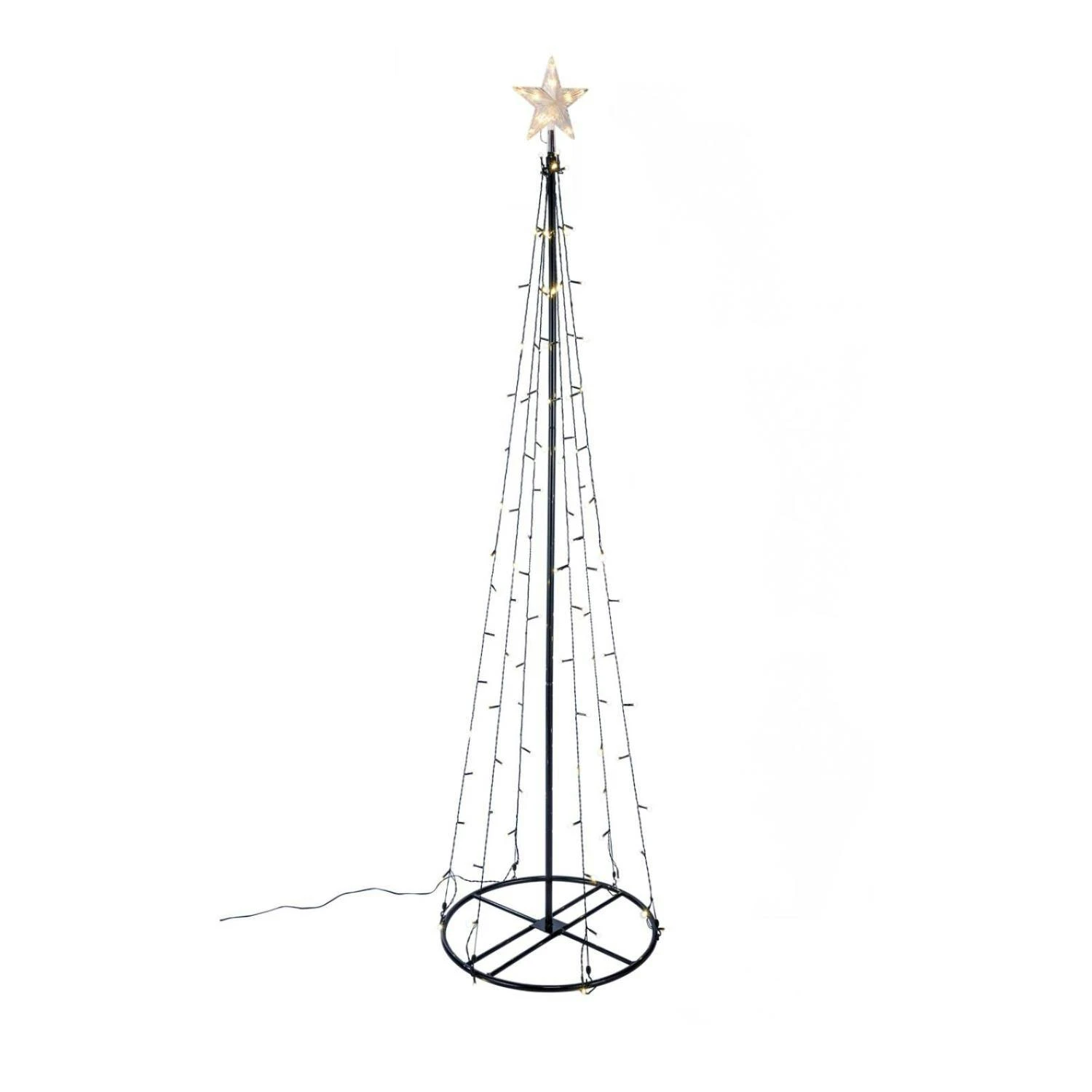 Eine klasse Idee für die Außendekoration. Dieser LED Lichtbaum wird nach dem Zusammenstecken mit den mitgelieferten Erdankern im Boden befestigt. An der Spitze ist ein leuchtender Stern und nach unten fallen, wie bei einem Tannenbaum, 6 Stränge bis zum Kreissegment. Daran werden die Lichterketten gespannt und in Form gebracht. Der Aufbau ist mit wenigen Handgriffen erledigt. Und schon leuchtet der Baum bis weit in die Nacht.