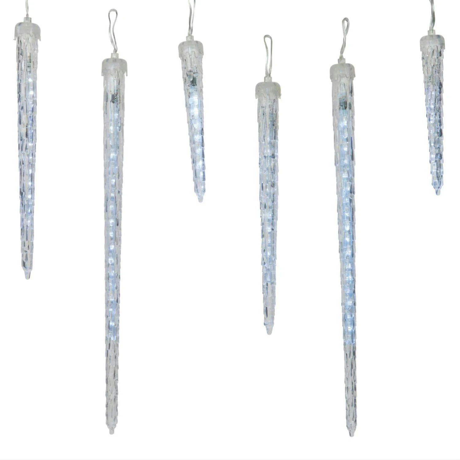 Winterliche Lichterkette mit 24 leuchtenden Eiszapfen aus Acryl. Die Eiszapfen leuchten in kaltweißem Licht und passen so perfekt zu einer richtig schönen Außenbeleuchtung in der kalten Jahreszeit.