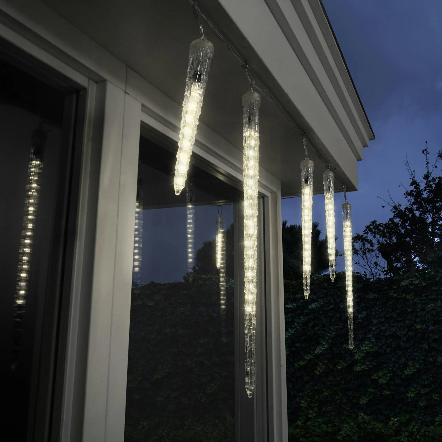 - 6 beleuchtete Eiszapfen (2x Groß, 2x Mittel, 2x Klein)