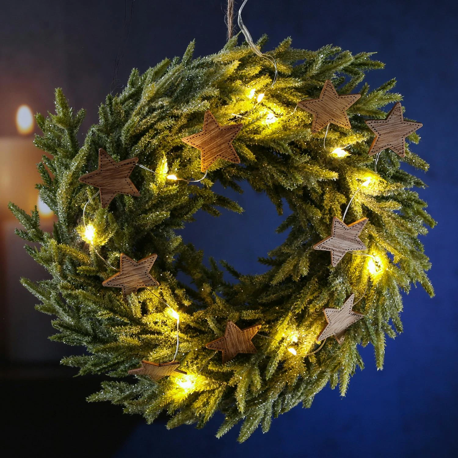 Die Lichterkette mit den 10 warmweißen LED ist ideal zur Dekoration von Tischen, Beistelltischen und Kommoden. Auch um den Spiegel oder um einen Bilderrahmen herum wirkt sie toll und verzaubert Deine Wohnung in einen weihnachtlichen Look. Die Holzsterne zwischen den LED sehen einfach klasse aus.