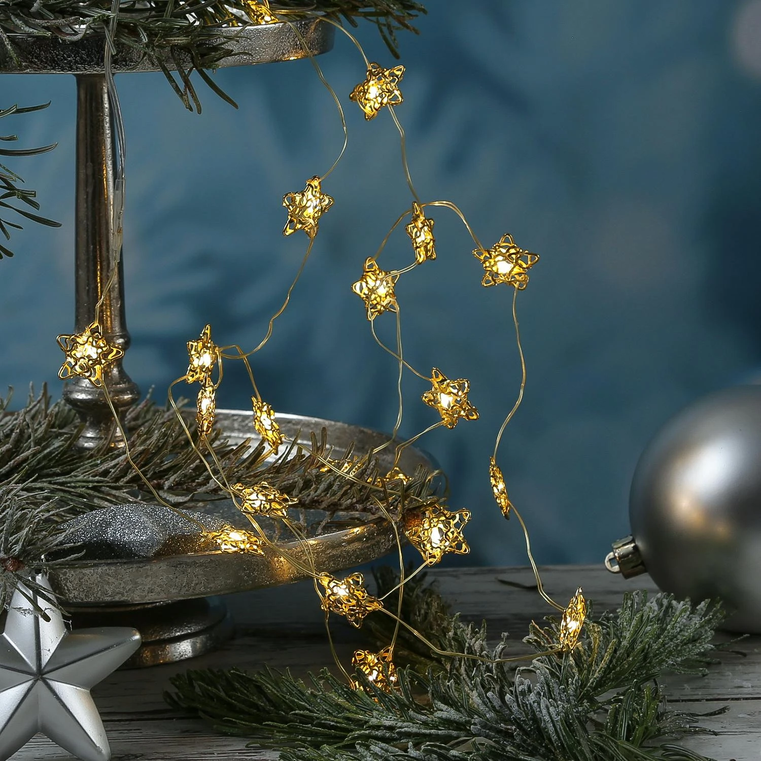 - Drahtlichterkette mit kleinen beleuchteten Drahtsternen