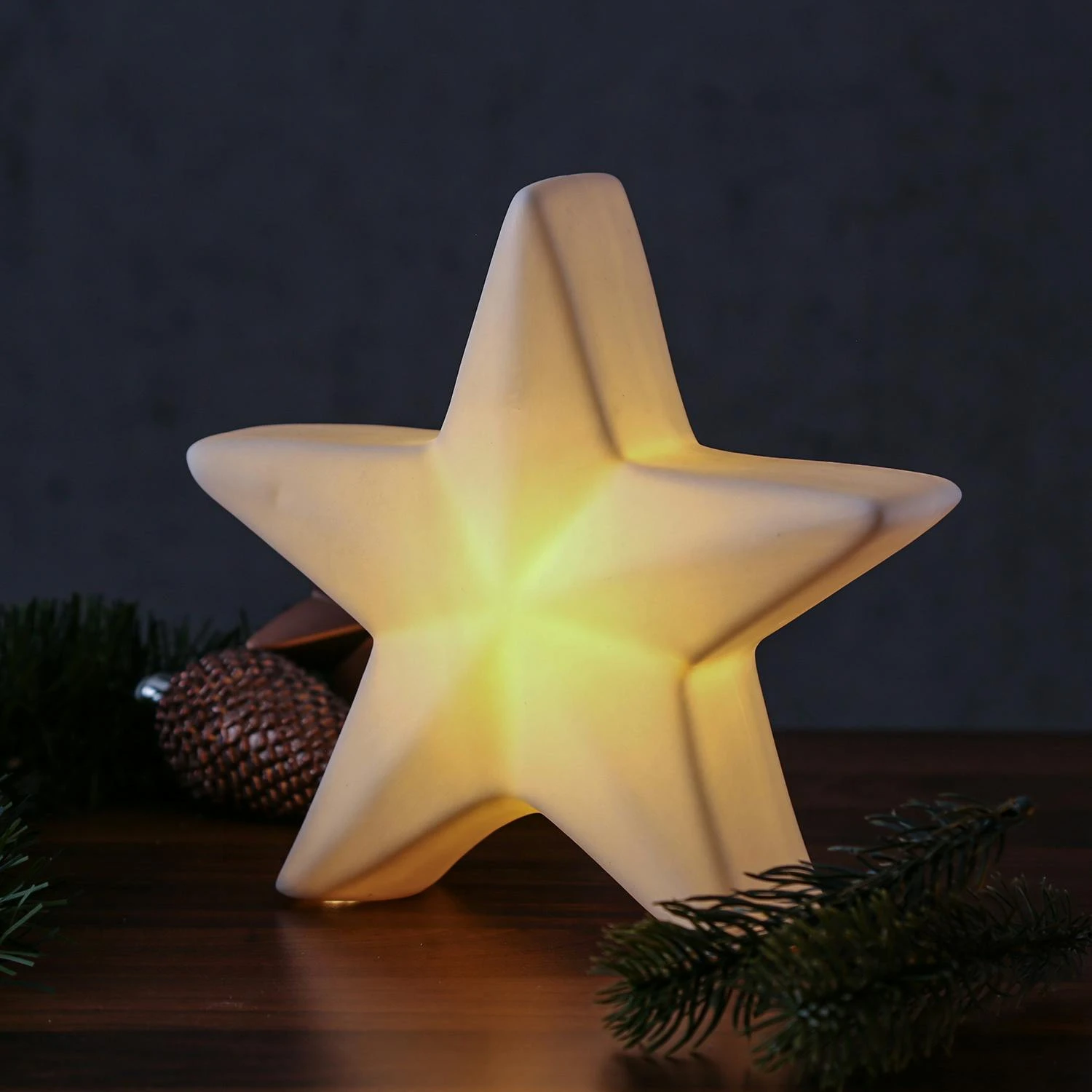 LED Stern – Dekostern – warmweiße LED – Porzellan – H: 19cm – inkl. Batterie – für Innen – weiß