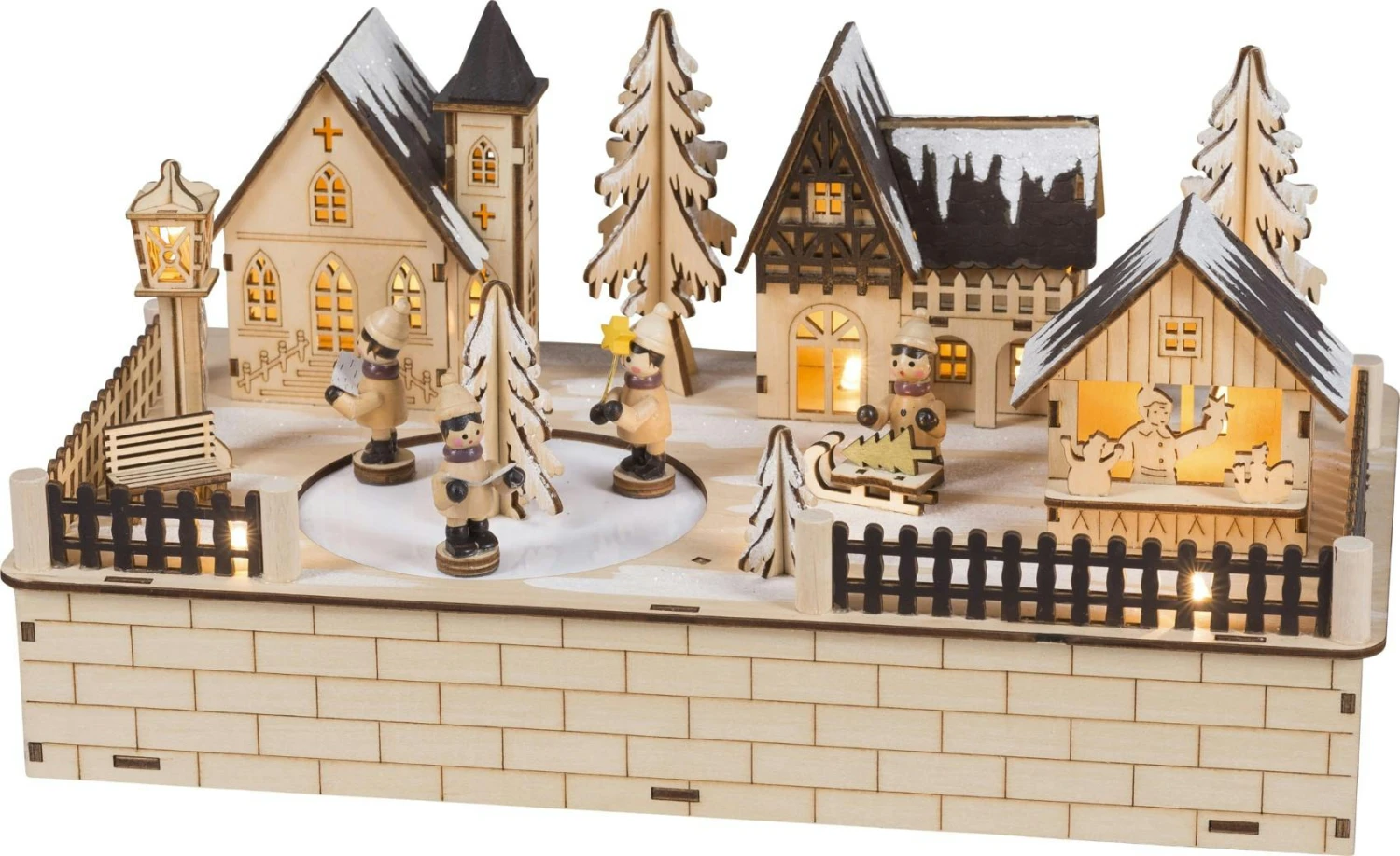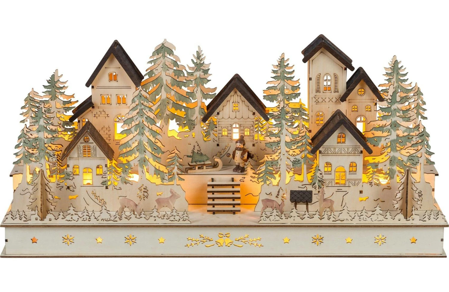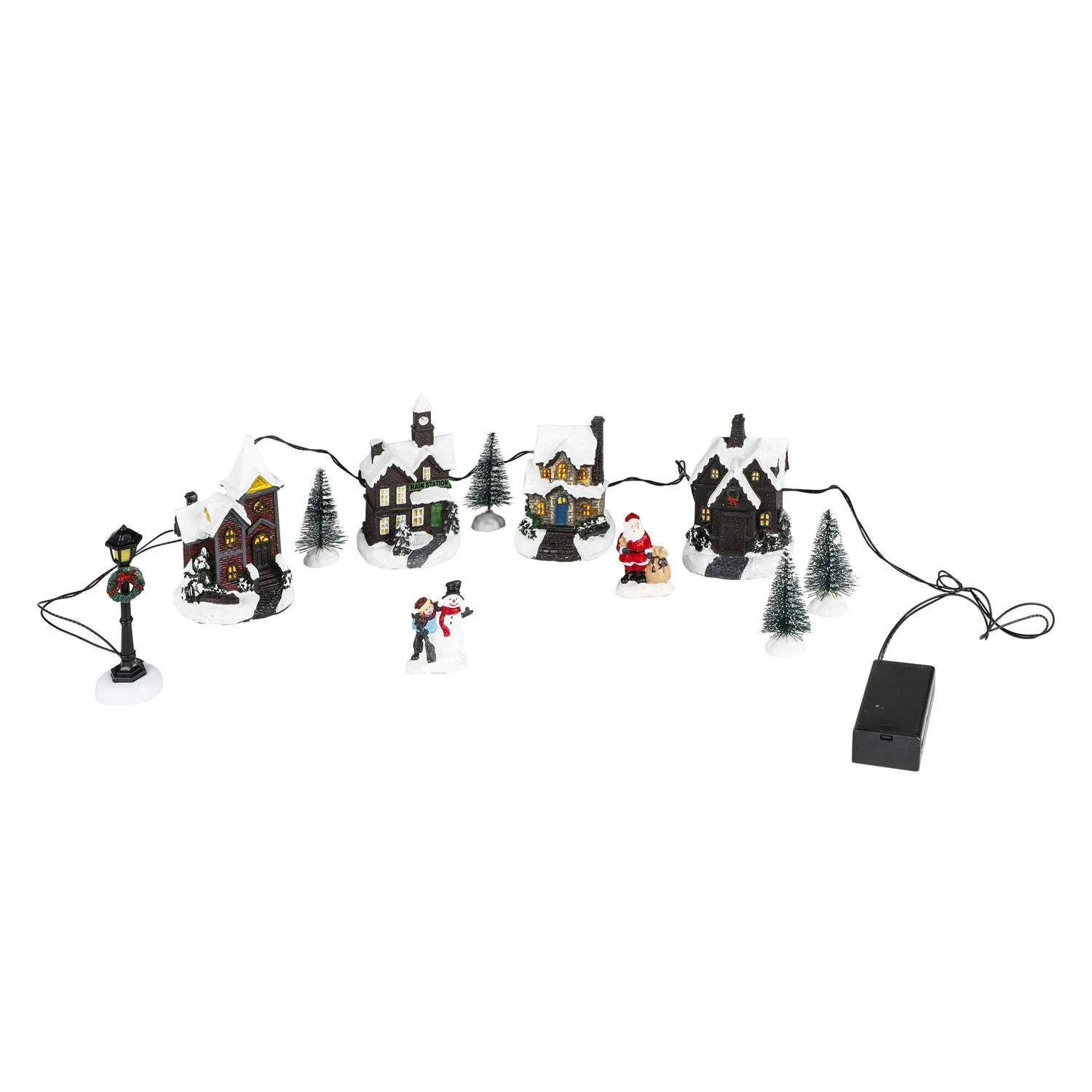 LED Weihnachtsdorf mit Schneedeko – 5 warmweiße LED – L: 26,5cm – Batteriebetrieb