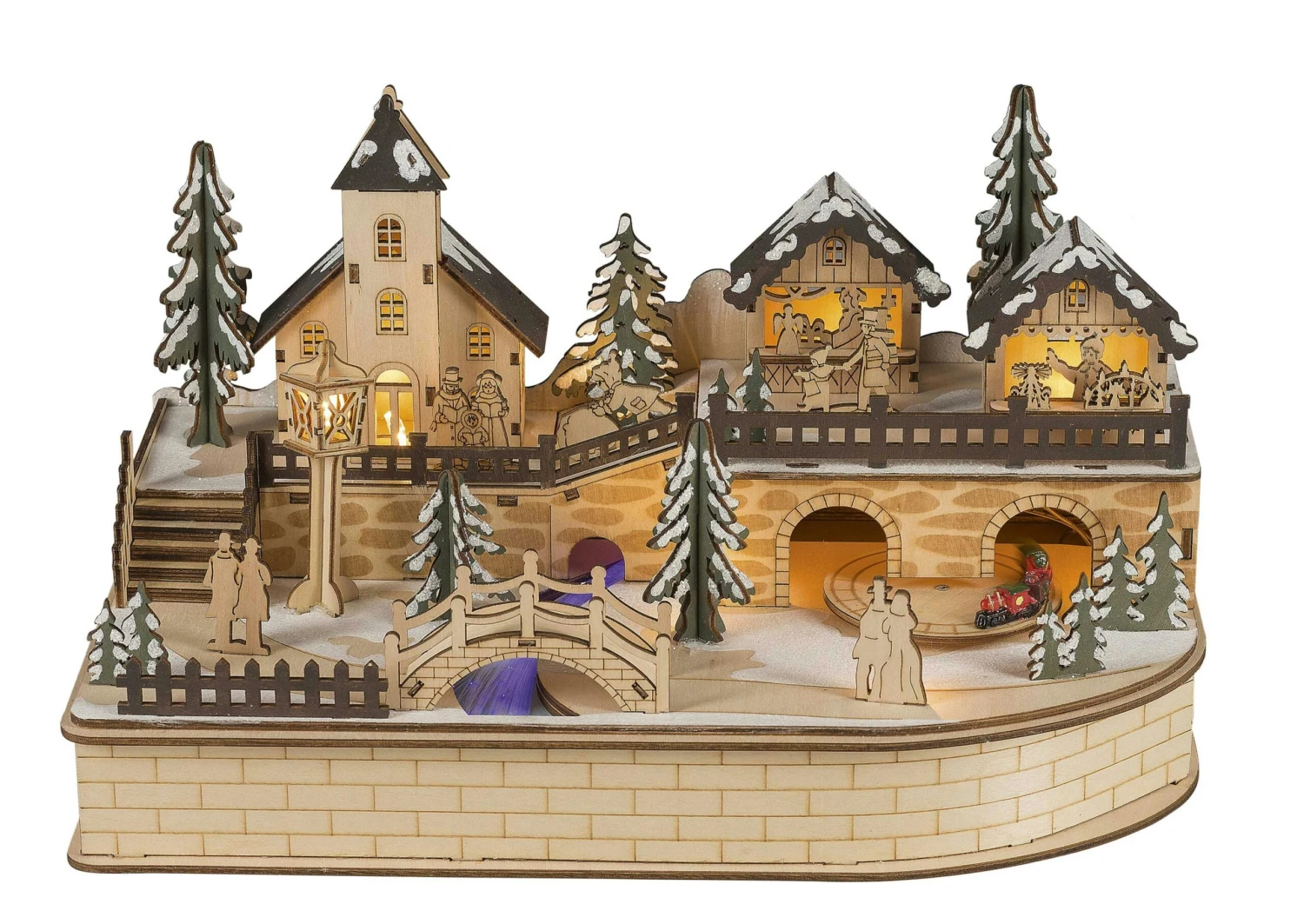 - Beleuchtete Weihnachtsstadt mit Schneedekoration