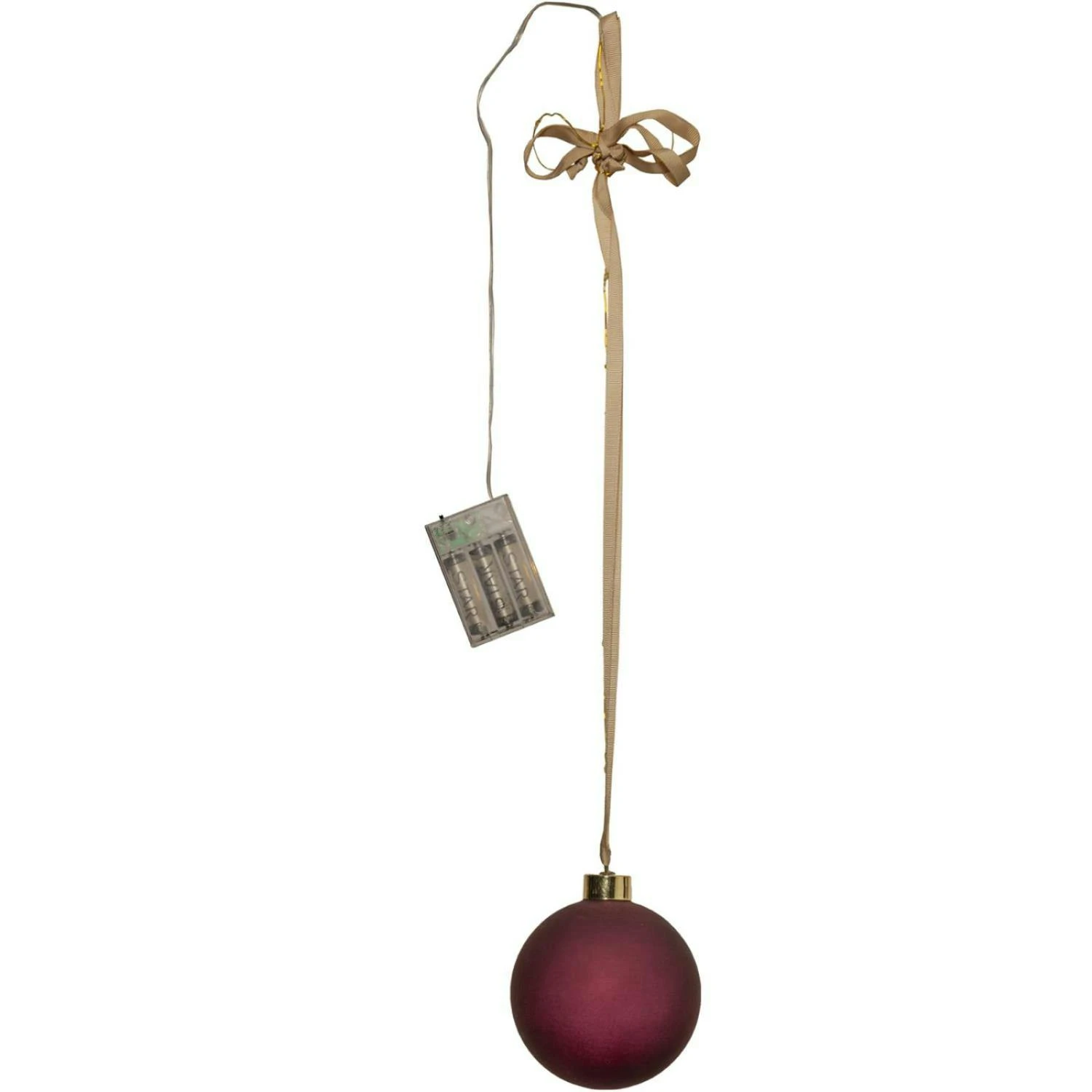 - Matte Christbaumkugel mit Drahtlichterkette und Dekoband