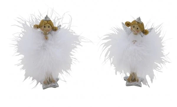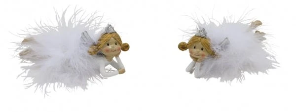 NEU Engelset mit Federn, liegend, weiß, 2 Stück, 14 x 4 x 6 cm