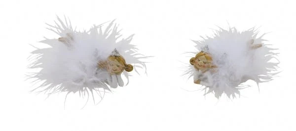 NEU Engelset mit Federn, liegend, weiß, 2 Stück, 8,5 x 4 x 4 cm