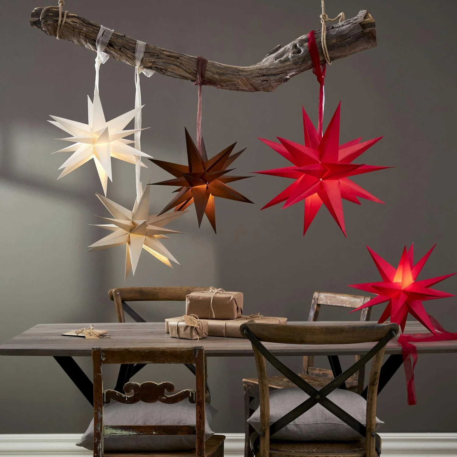 Mit 35cm Duchmesser ist der 3D-Stern bestens für Fenster, Regale oder frei hängend im Raum geeignet.
