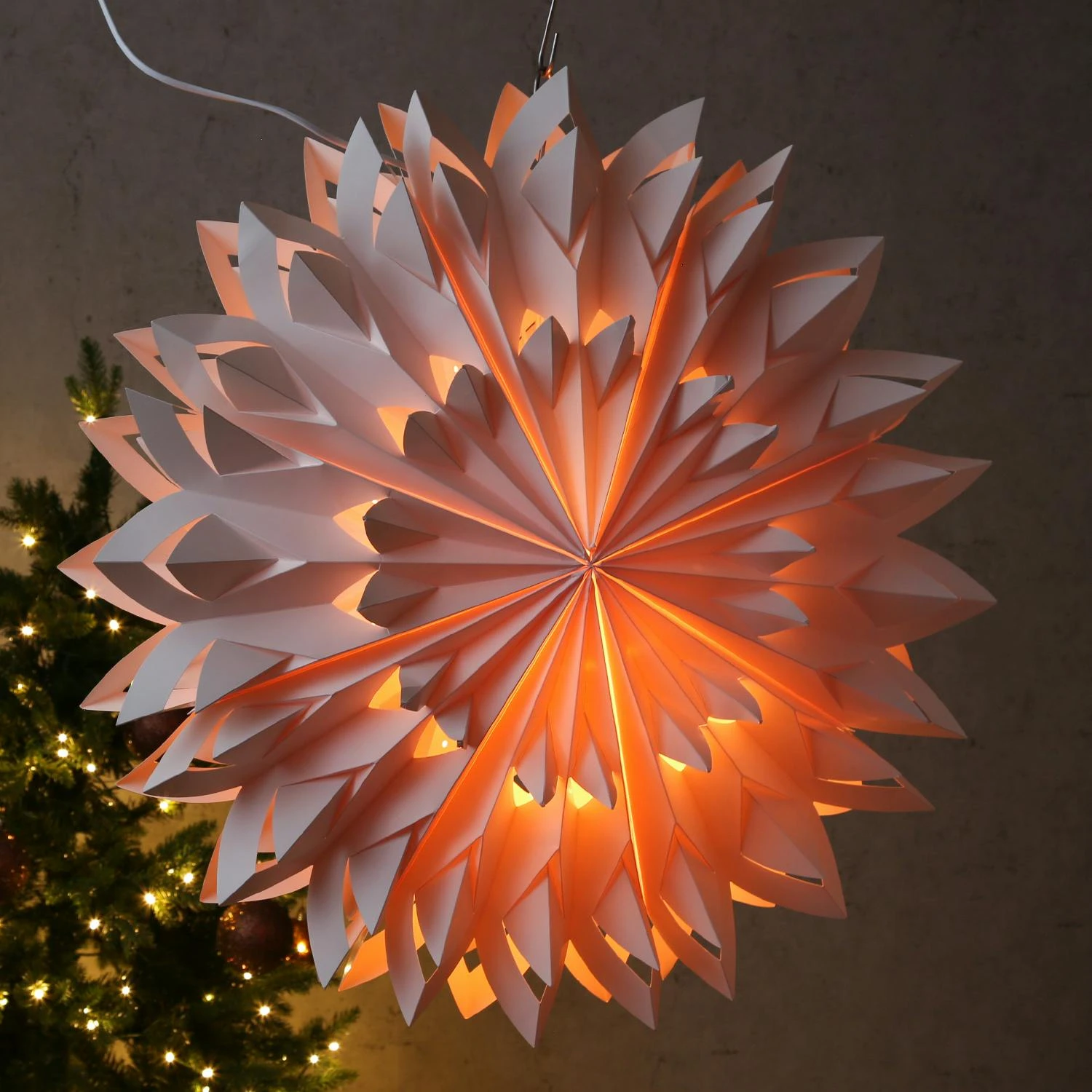 Papierstern EISBLUME – hängend – D: 70cm – inkl. E14 Fassung und Kabel – weiß