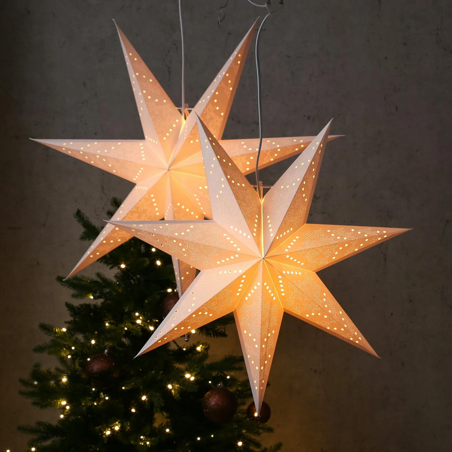 Papierstern Luna – hängend – 7-zackig – D: 50cm – inkl. E14 Fassung und Kabel – weiß