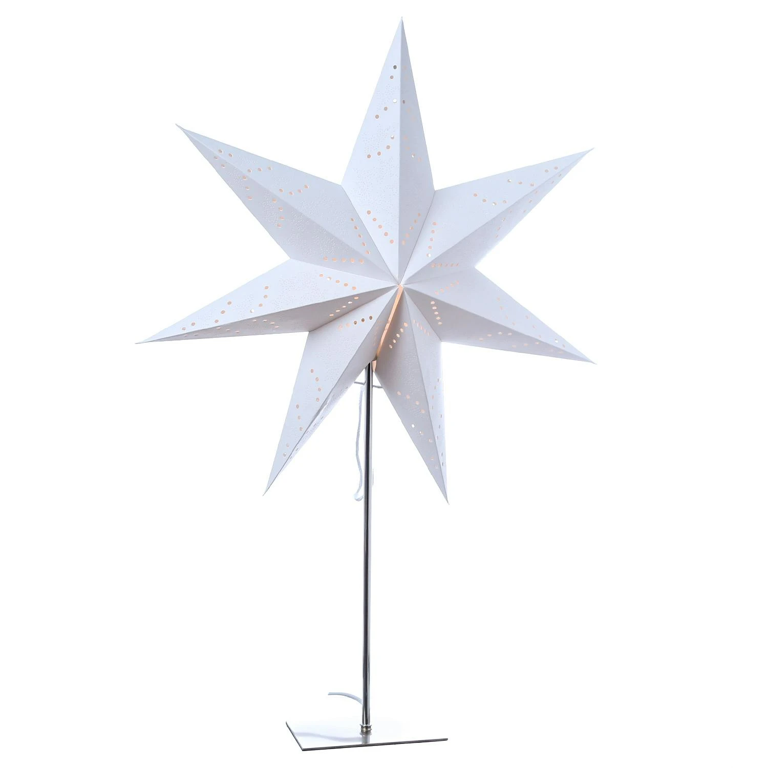 Papierstern LUNA – stehend – 7-zackig – D: 54cm, H: 75cm – inkl. E14 Fassung u. Kabel – weiß