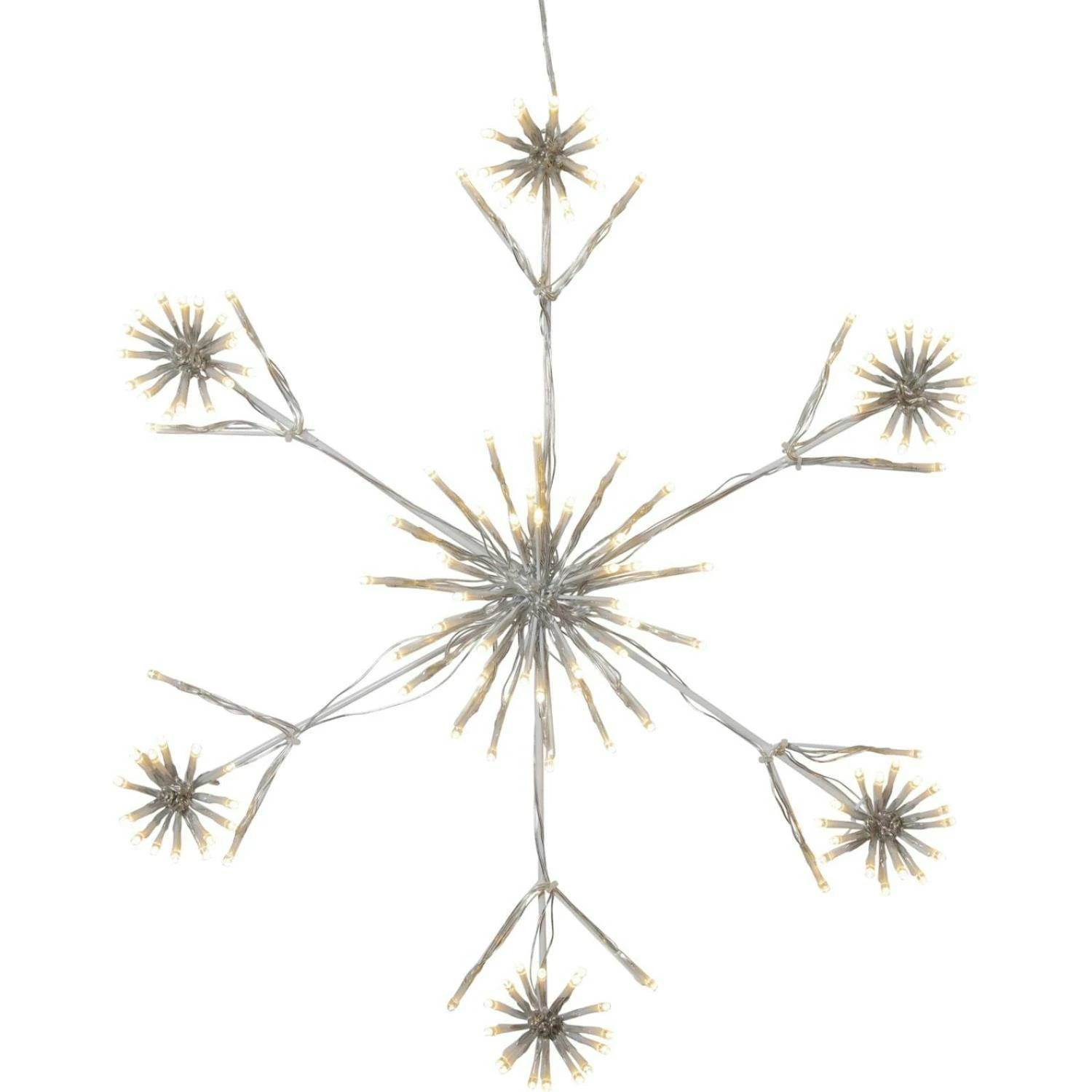 Lieferumfang: 1 x Raburg weihnachtliche LED-NEON-SCHNEEFLOCKE in WARM-WEIß, Gartenstecker, ca. 70 cm, batteriebetrieben, 6/18 h-Timer, mit Bodenstecker