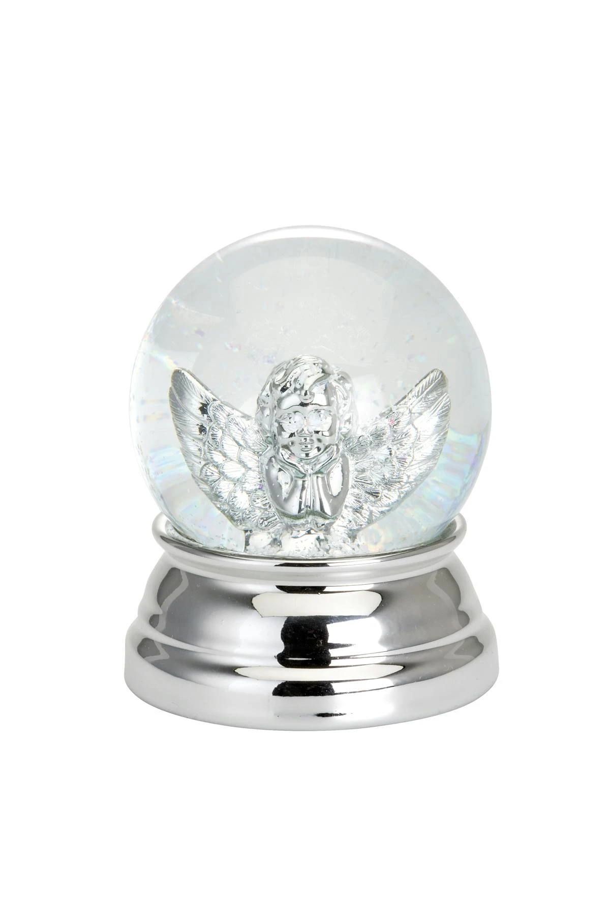 Schneekugel Engel Groß, versilbert, H 10,0cm D 8,0cm