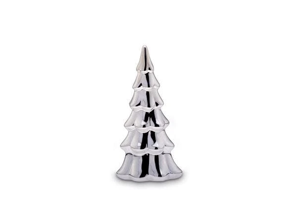 Tannenbaum Dekoration, mittel, Porzellan galvansiert silberglänzend. Größe 10 x 7,5 cm, Höhe 20 cm.