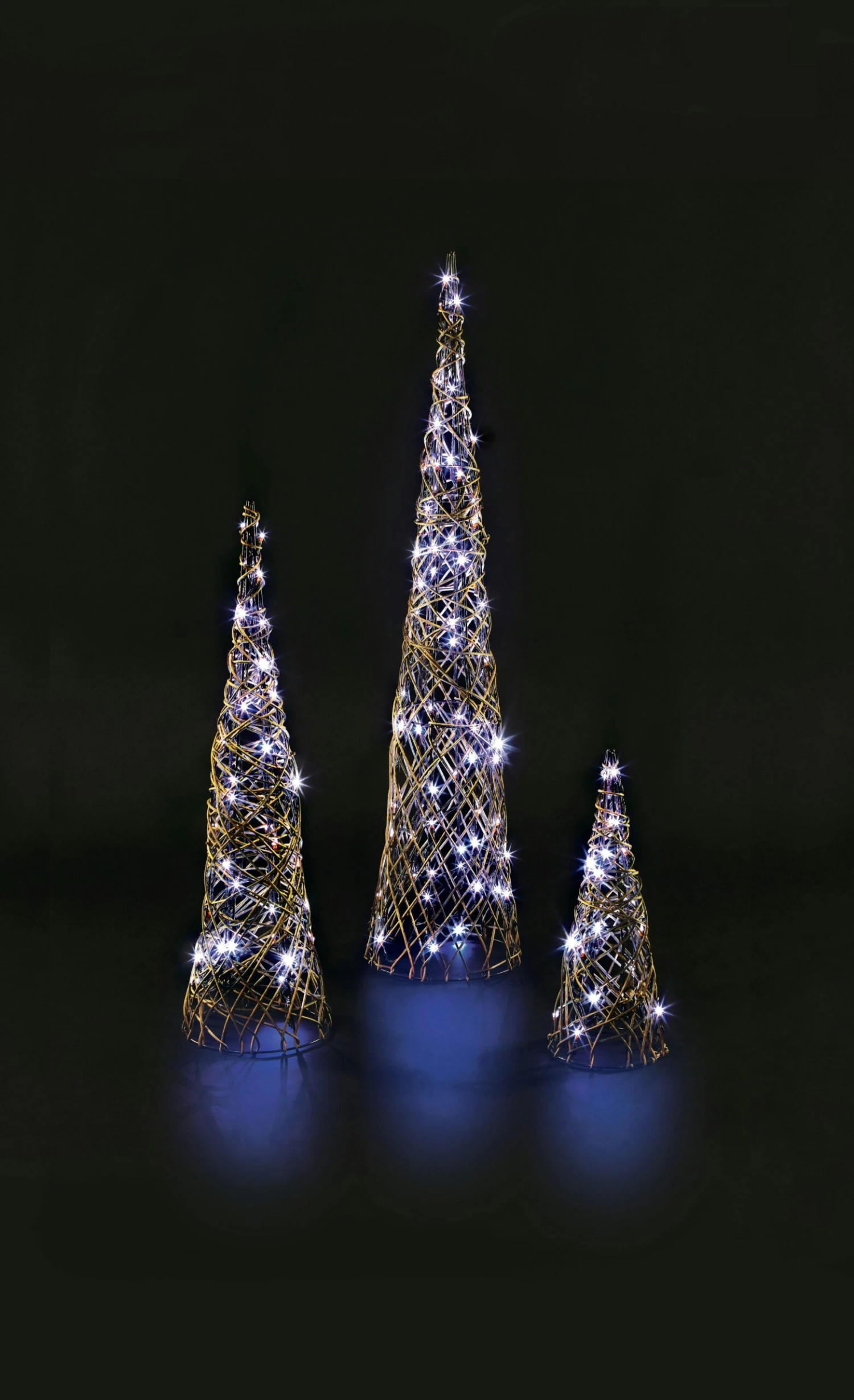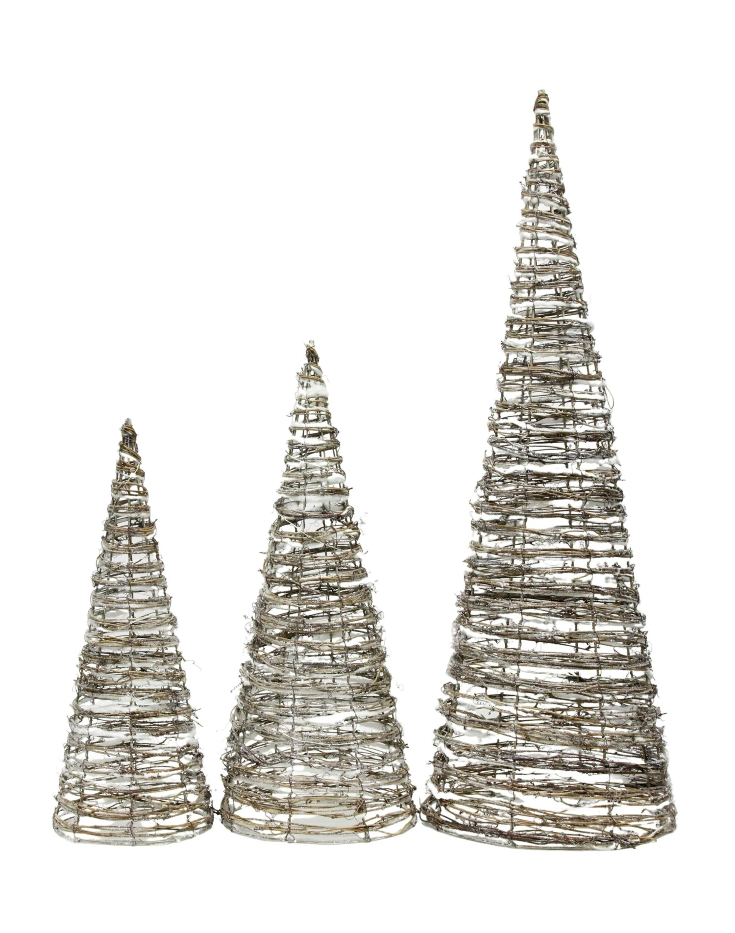 Die batteriebetriebenen LED-Kegel von Tarrignton House sind in 3 Größen erhältlich: S: 50 x 20 x 20 x 20 cm, M: 60 x 25 x 25 x 25 cm und L: 90 x 30 x 30 x 30 cm (Höhe x Breite x Tiefe). Sie haben 90 warmweiße LED-Lichter und ein Kabel mit einer Länge von 80 cm. Die LED-Kegel werden mit 3 AA-Batterien betrieben (nicht im Lieferumfang enthalten) und sind für die Verwendung in Innenräumen vorgesehen.