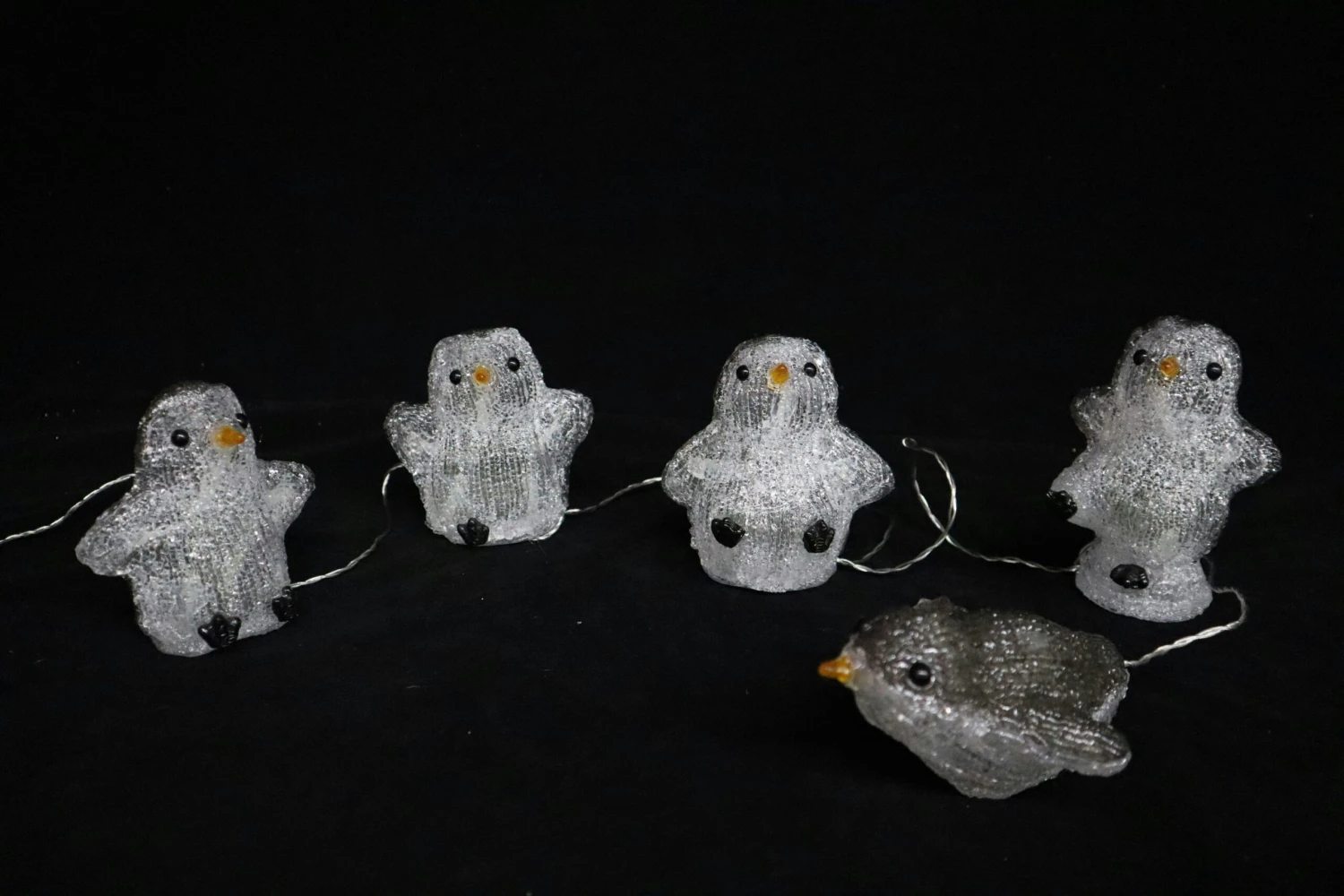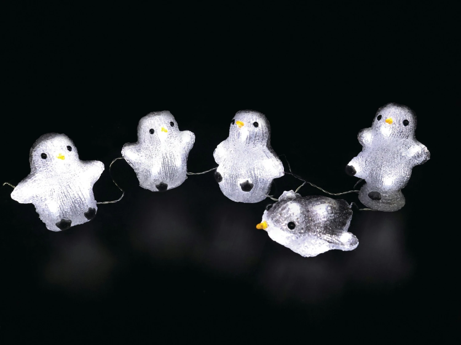 Das Set von 5 realistischen Acrylpinguinen von Tarrington House besteht aus ca. 40 kühlweißen LED-Lichtern (2.4 W), verfügt über eine Zeitschaltuhr und ist für den Innen- und Außenbereich geeignet. Die Figuren messen 11 x 7 x 12 cm (B x T x H).