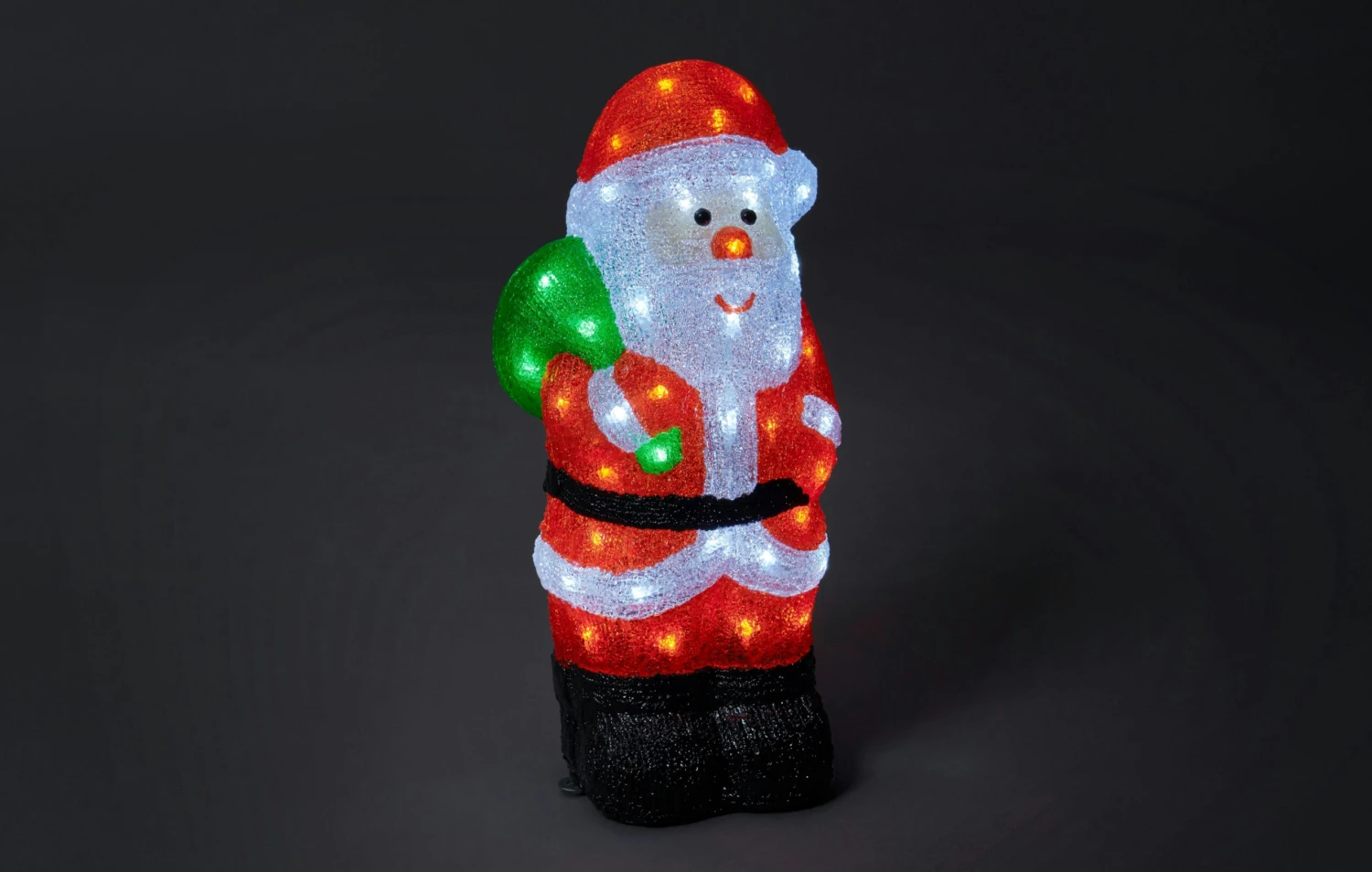 Dieser Weihnachtsmann schafft die richtige Atmosphäre für die Weihnachtszeit. Die Figur besteht aus Acryl und Kupper mit detaillierte Form. Das Produkt hat die Abmessungen von (B x T x H) 22 x 17 x 49 cm. Diese Figur verleiht Ihrem Zuhause für Weihnachten ein einzigartiges Aussehen, besteht aus 60 kaltweißes LED (3.6 W) und ist für Innen- und Außeneinsatz geeignet.