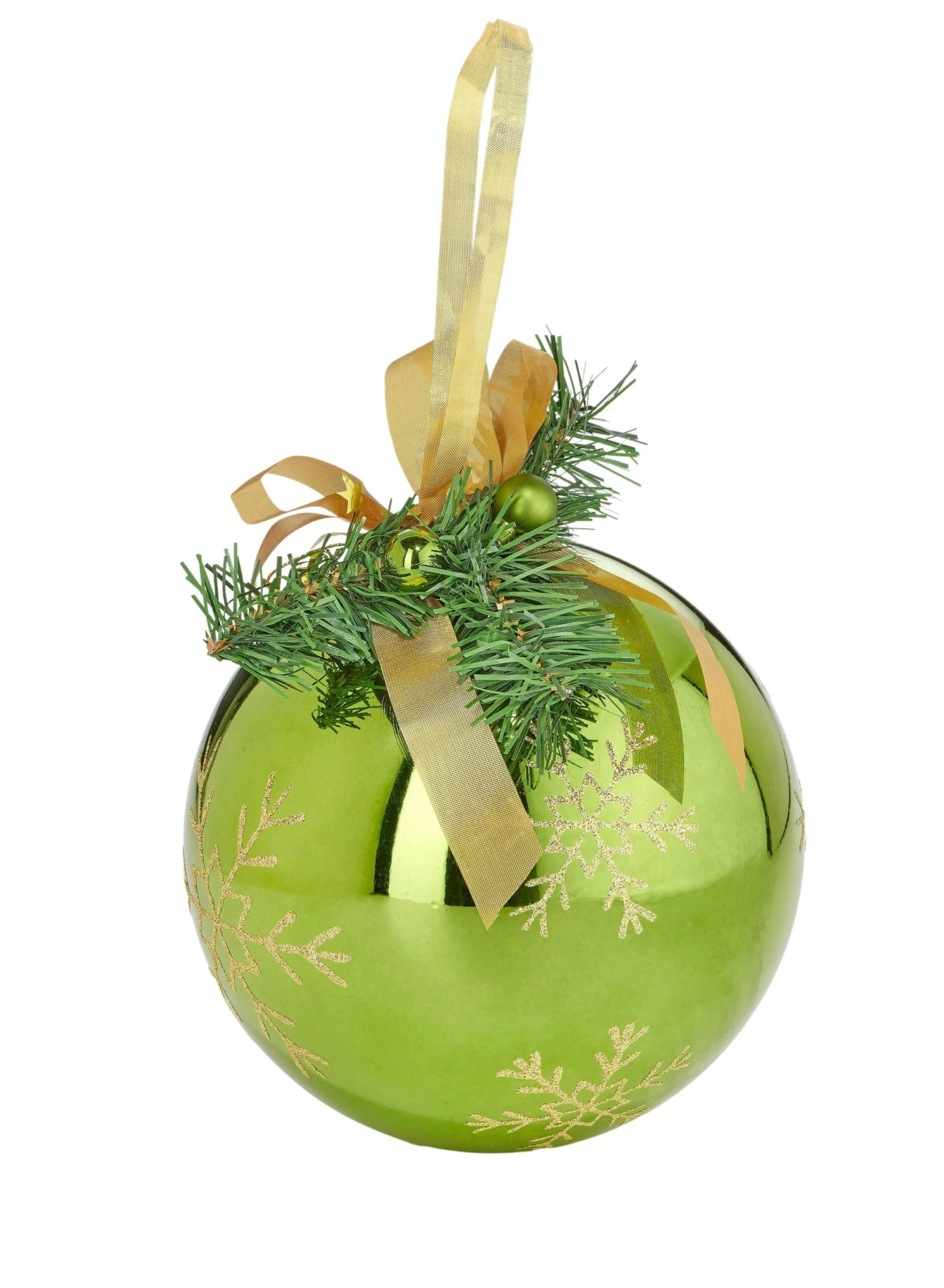 Diese dekorative Kugel von Tarrington House in Grün ist das perfekte Dekorationselement für Ihren Weihnachtsbaum. Er besteht aus einer kupferfarbenen Band zur Befestigung am Baum, einem Tannenzweig und einer glänzenden Oberfläche, die mit kupferfarbenen Schneeflocken verziert ist. Er hat einen Durchmesser von 20 cm und ist aus Kunststoff gefertigt.