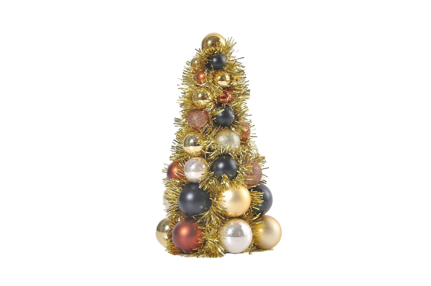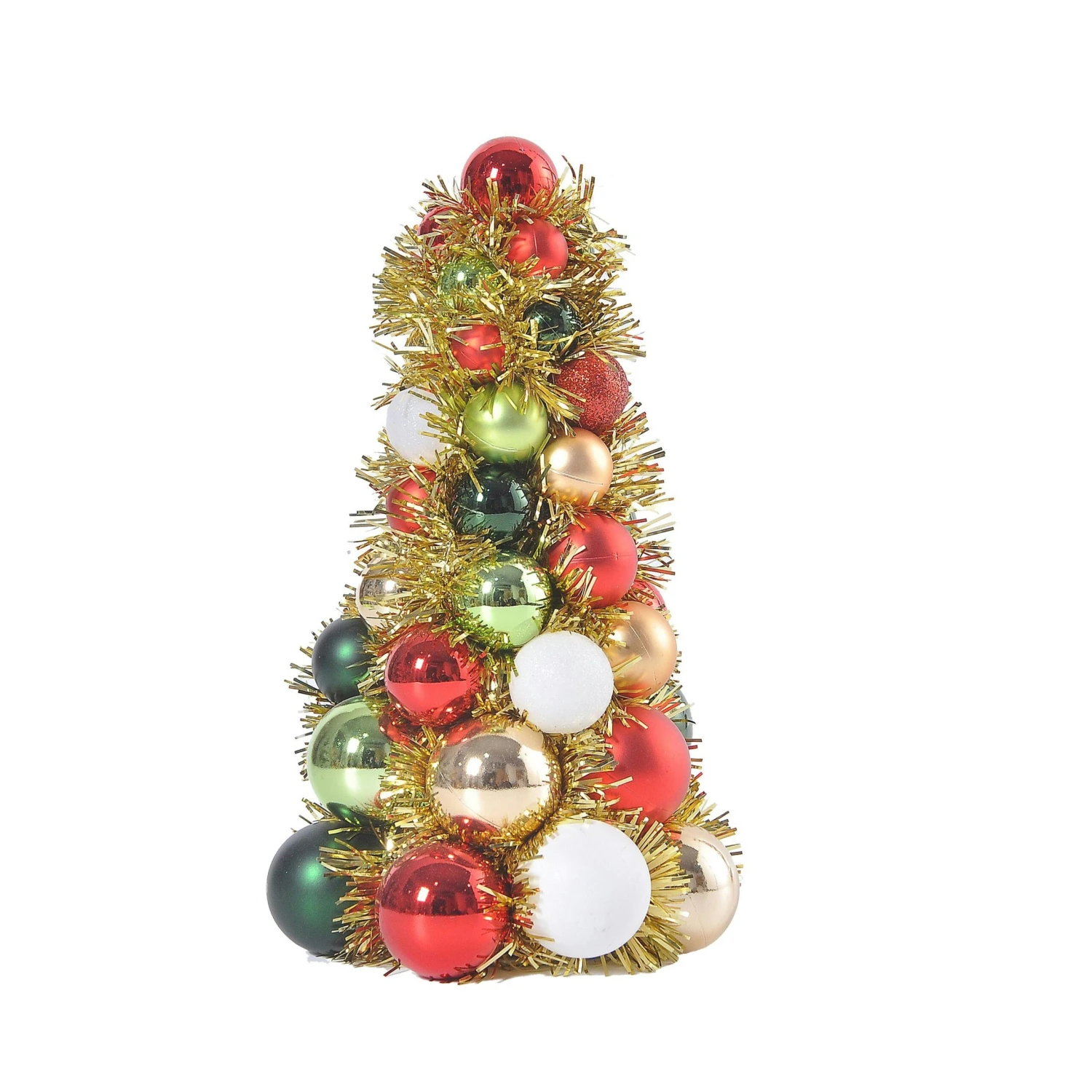 Dieser dekorative Weihnachtsbaum von Tarrington House besteht aus einer Struktur aus bunten Kugeln und Lametta und misst 14 x 14 x 25 cm (B x T x H).