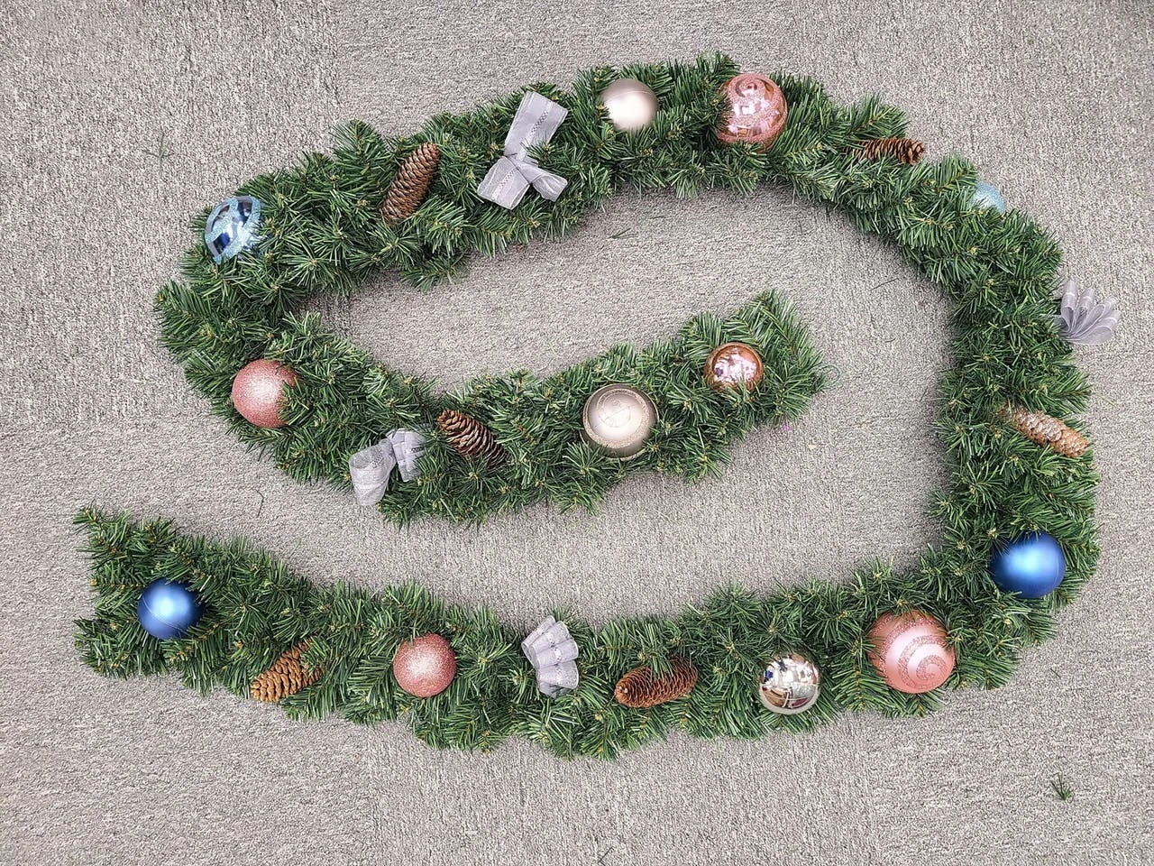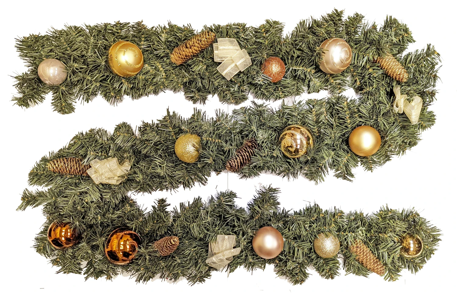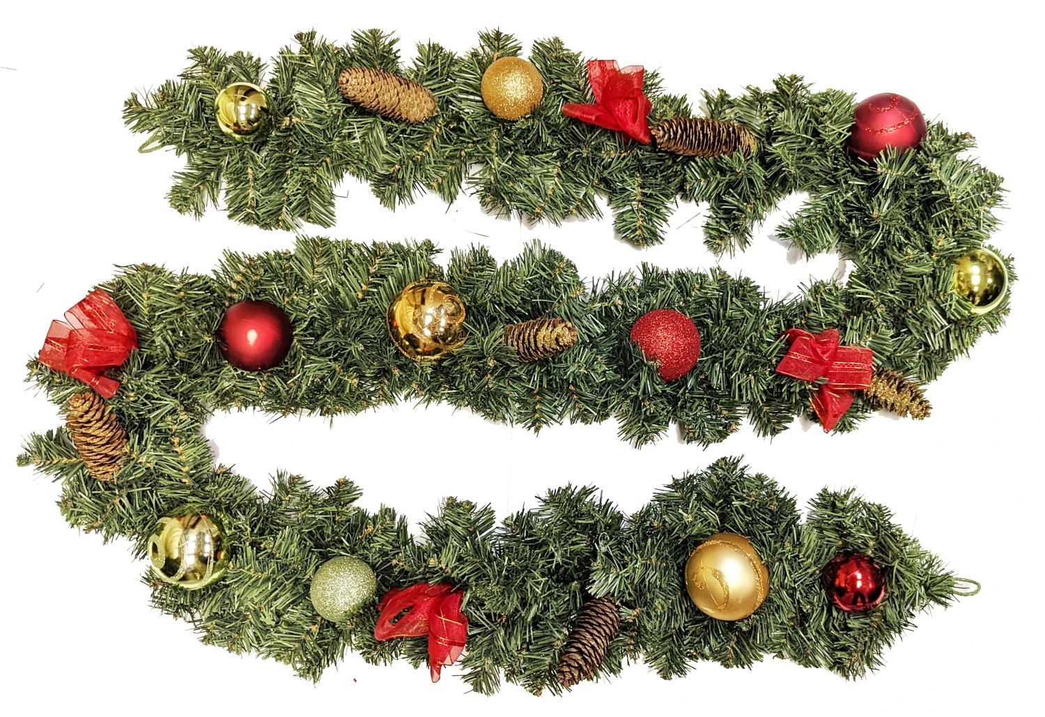 Hol Dir winterliche Wohlfühlatmosphäre in Dein Zuhause mit dieser Weihnachtsgirlande mit Kugeln, Schleifenband und Tannenzapfen dekoriert. Die ganze Gestaltung ist sehr detailliert und naturgetreu, so dass ein Unterschied zum Original aus der Natur kaum festzustellen ist. Nicht nur an Weihnachten, sondern auch zu vielen Festen, wie Hochzeiten oder Geburtstagen, ist die prachtvolle Girlande ein echter Hingucker.