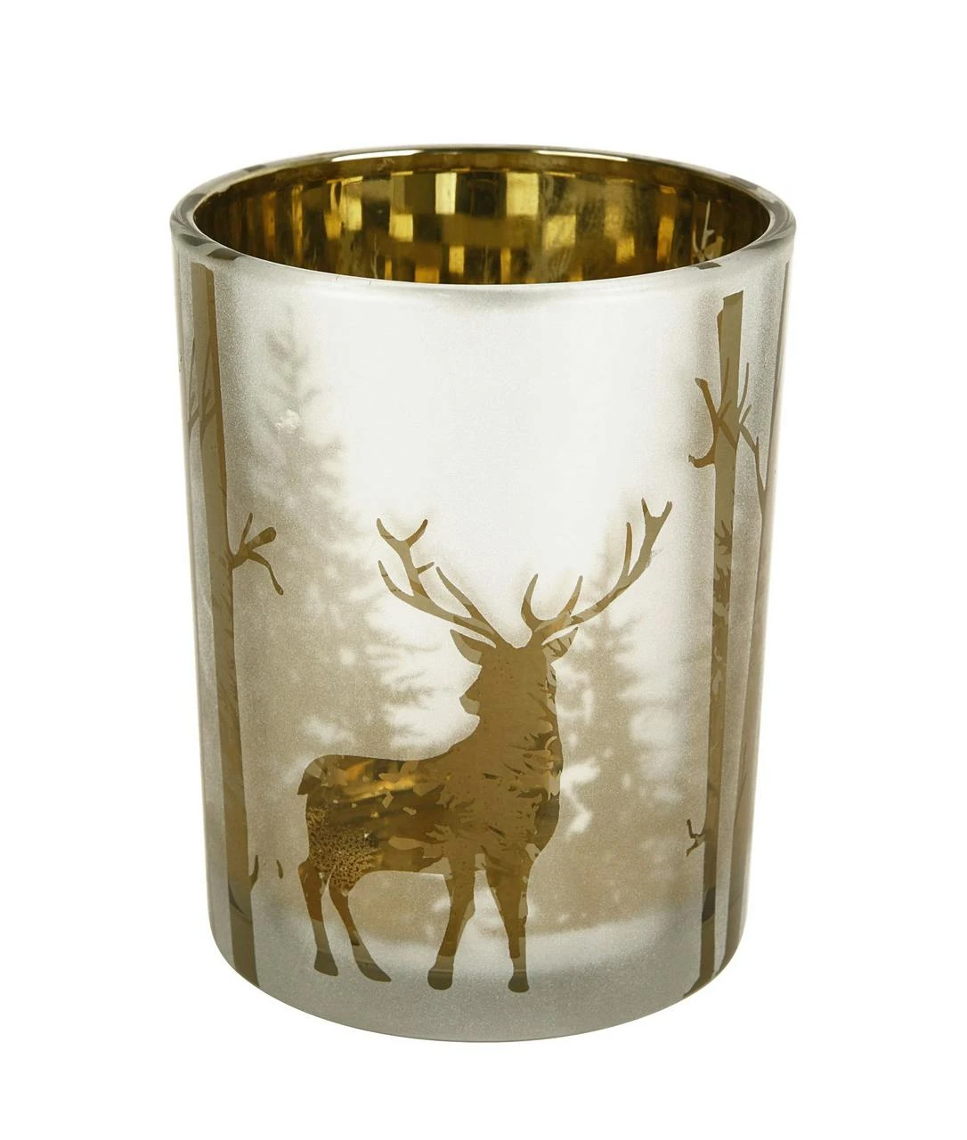 Der goldene Glas-Kerzenhalter mit silbernen Flecken von Tarrington House schafft eine festliche Atmosphäre und fügt sich perfekt in jede Einrichtung und jeden Ort ein. Er ist ausschließlich für den Innenbereich bestimmt und misst 11 x 11 x 14 cm (B x T x H).