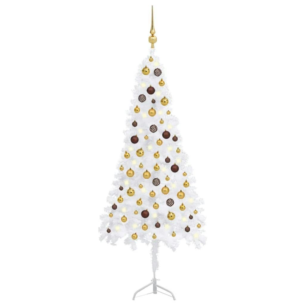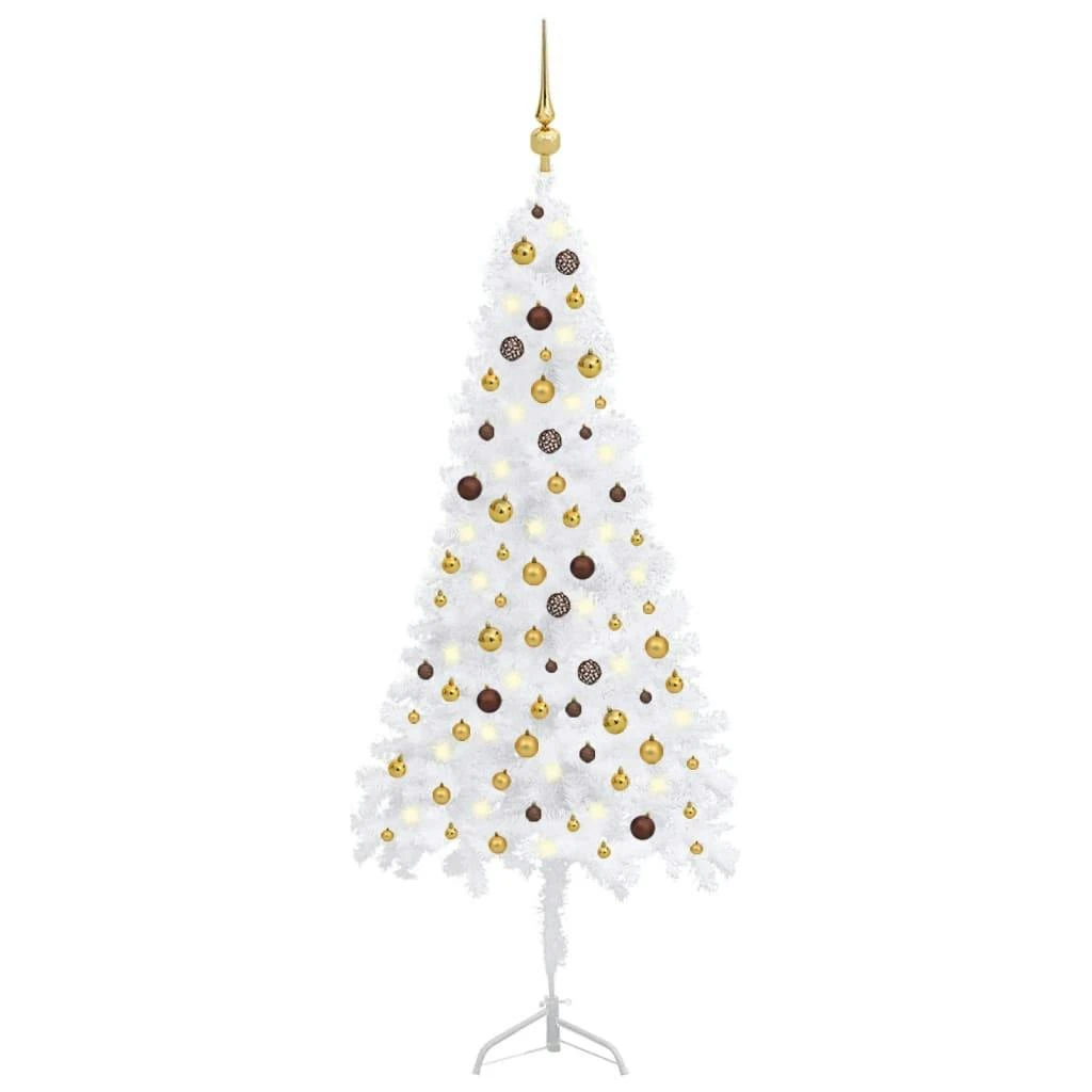 Dieser künstliche Eck-Weihnachtsbaum wird ganz bestimmt zum magischen Blickfänger unter Ihren Weihnachtsdekorationen sein und eine einzigartige Weihnachtsatmosphäre schaffen! Dieser schöne Weihnachtsbaum aus PVC ist in Form und Aussehen sehr naturgetreu. Alle Äste können nach Belieben ausgerichtet werden, wodurch Sie den Baum in die perfekte Form bringen können. Der mitgelieferte Christbaumständer aus Stahl verleiht Ihrem Tannenbaum optimale Stabilität. Darüber hinaus kann der Eck-Weihnachtsbaum jedes Jahr wieder verwendet werden, was ihn im Vergleich zu einem echten Baum zu einer sehr wirtschaftlichen Wahl macht. Mit energieeffizienten LED-Leuchten ausgestattet, leuchtet er sehr schön auf und schafft eine gemütliche Weihnachtsstimmung. Darüber hinaus ist dieser Weihnachtsbaum mit einer schönen Spitze und Kugeln verziert und wird ein echter Hingucker in Ihrem Zuhause sein. Dieser Baum ist ein Viertel eines normalen Baumes, daher ist er geeignet, in eine Ecke gestellt zu werden. Wo der Platz begrenzt ist, ist dieser Weihnachtsbaum die perfekte Wahl.