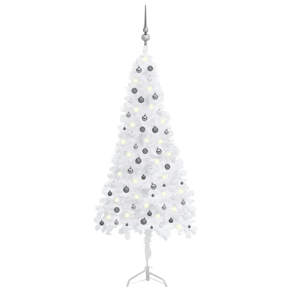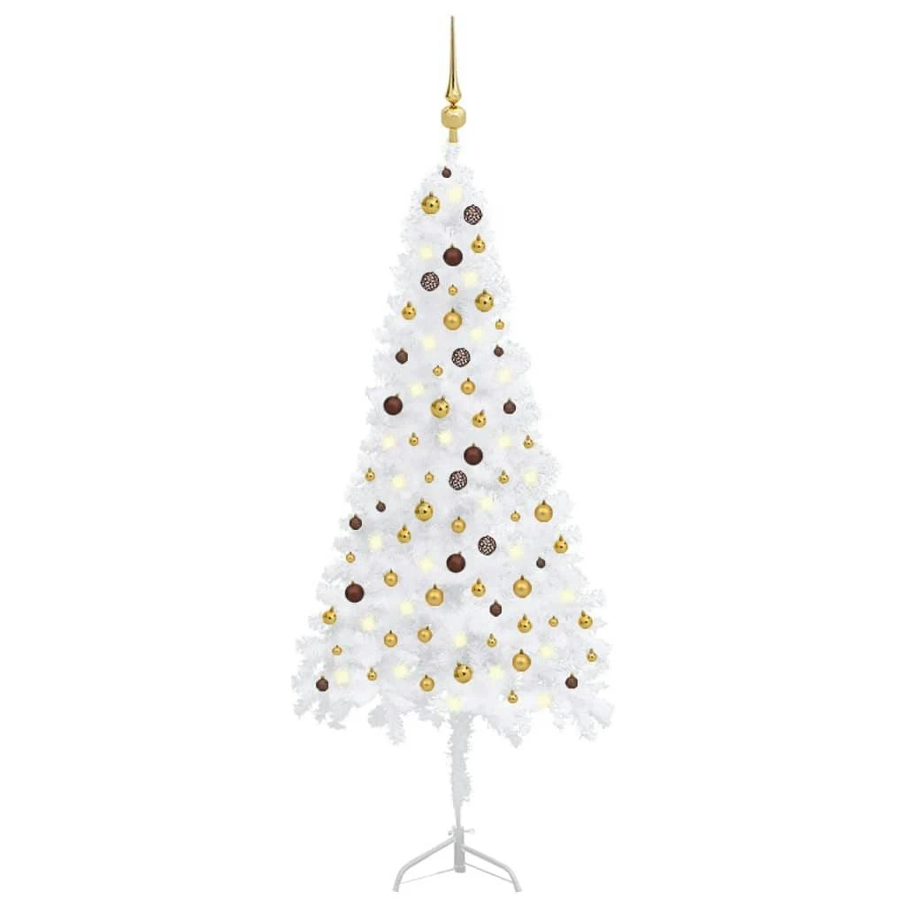 Dieser künstliche Eck-Weihnachtsbaum wird ganz bestimmt zum magischen Blickfänger unter Ihren Weihnachtsdekorationen sein und eine einzigartige Weihnachtsatmosphäre schaffen! Dieser schöne Weihnachtsbaum aus PVC ist in Form und Aussehen sehr naturgetreu. Alle Äste können nach Belieben ausgerichtet werden, wodurch Sie den Baum in die perfekte Form bringen können. Der mitgelieferte Christbaumständer aus Stahl verleiht Ihrem Tannenbaum optimale Stabilität. Darüber hinaus kann der Eck-Weihnachtsbaum jedes Jahr wieder verwendet werden, was ihn im Vergleich zu einem echten Baum zu einer sehr wirtschaftlichen Wahl macht. Mit energieeffizienten LED-Leuchten ausgestattet, leuchtet er sehr schön auf und schafft eine gemütliche Weihnachtsstimmung. Darüber hinaus ist dieser Weihnachtsbaum mit einer schönen Spitze und Kugeln verziert und wird ein echter Hingucker in Ihrem Zuhause sein. Dieser Baum ist ein Viertel eines normalen Baumes, daher ist er geeignet, in eine Ecke gestellt zu werden. Wo der Platz begrenzt ist, ist dieser Weihnachtsbaum die perfekte Wahl.