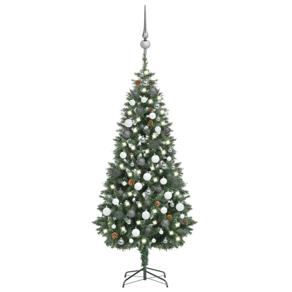Dieser wunderschöne künstliche Weihnachtsbaum ist von der Form und Optik her sehr naturgetreu und schafft genau die richtige Atmosphäre in der kommenden Weihnachtszeit. Dieser Weihnachtsbaum ähnelt einer Kiefer und verfügt über naturgetreue Zweige mit weißem Glitzer an den Spitzen, die ihn extrem dicht erscheinen lassen. Dieser schöne Tannenbaum ist leicht und langlebig. Die mitgelieferten Nadeläste und natürlichen Kiefernzapfen können in beliebiger Anordnung angebracht werden. Zudem kann dieser künstliche Christbaum jedes Jahr wieder verwendet werden, was ihn im Vergleich zu einem echten Tannenbaum zu einer sehr wirtschaftlichen Wahl macht. Der mitgelieferte Ständer aus Eisen sorgt für Stabilität. Mit energieeffizienten LED-Leuchten ausgestattet, leuchtet der Baum schön auf und schafft eine gemütliche Weihnachtsstimmung. Darüber hinaus ist der Tannenbaum mit einer schönen Spitze und Kugeln verziert und wird ein echter Hingucker in Ihrem Zuhause sein. Mit diesem wunderschönen Weihnachtsbaum haben Sie zur Weihnachtszeit bestimmt viel Spaß!