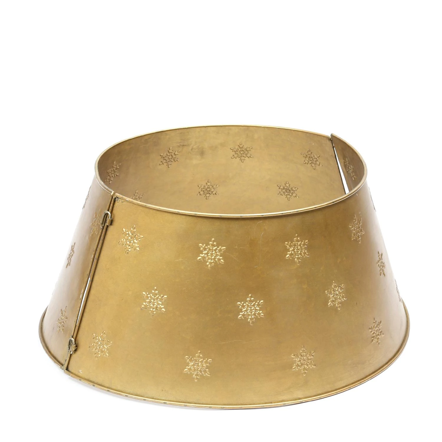 Dann ist der goldfarbene Weihnachtsbaumring mit den Schneeflocken aus Metall genau richtig!
